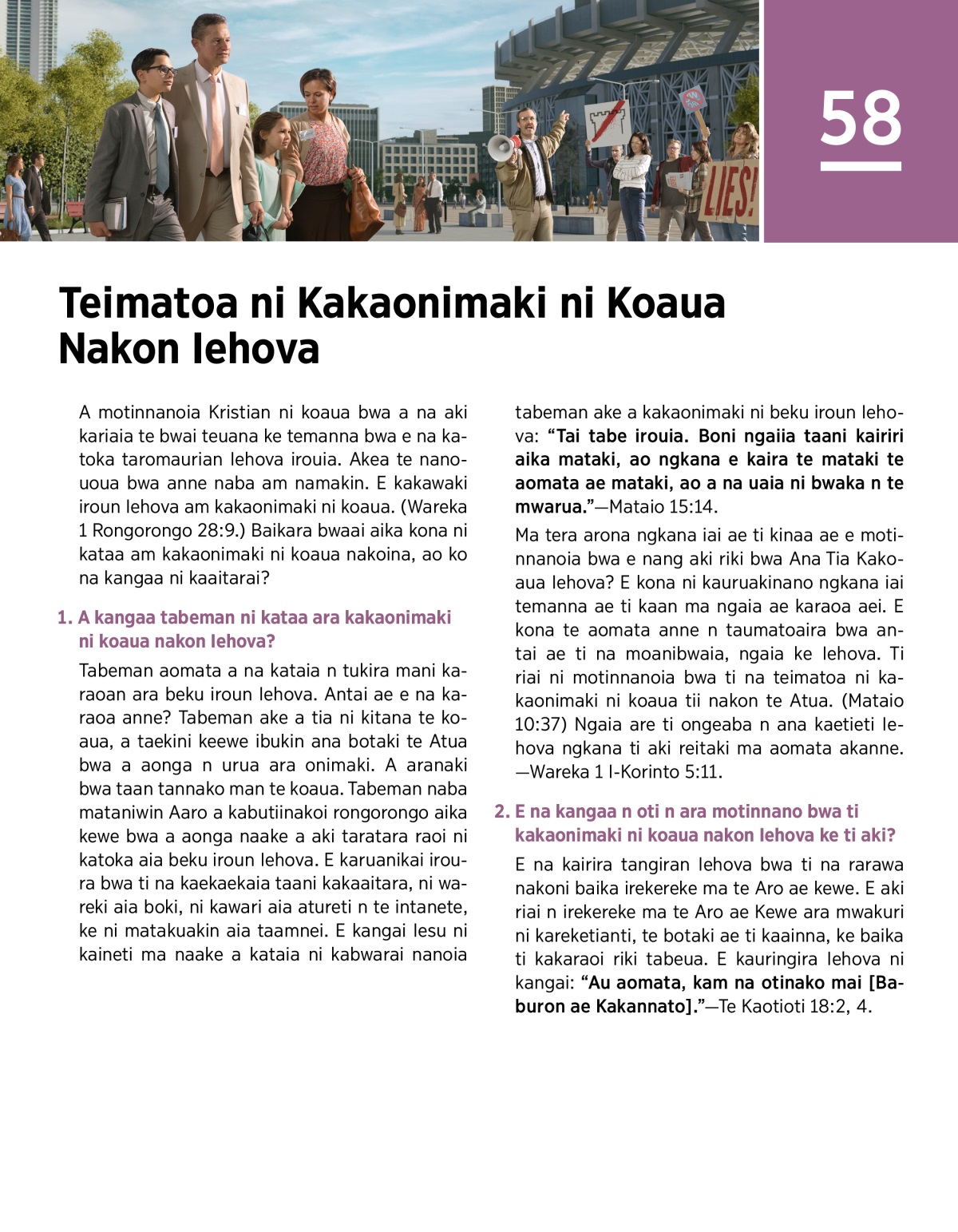 Noria bwa tera ae ko na karaoia ngkana iai aika a kabutiinako rongorongo aika kewe ibukia Ana Tia Kakoaua Iehova.