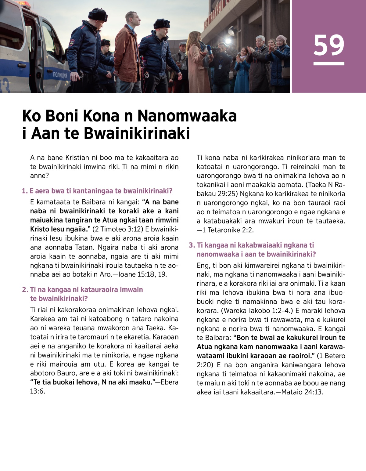 E kainnanoa te ninikoria te beku iroun Iehova ngkana a kataia tabemwaang n tukira mani karaoana. Kaota te TAAMNEI, ao maroroakina te titiraki aei.