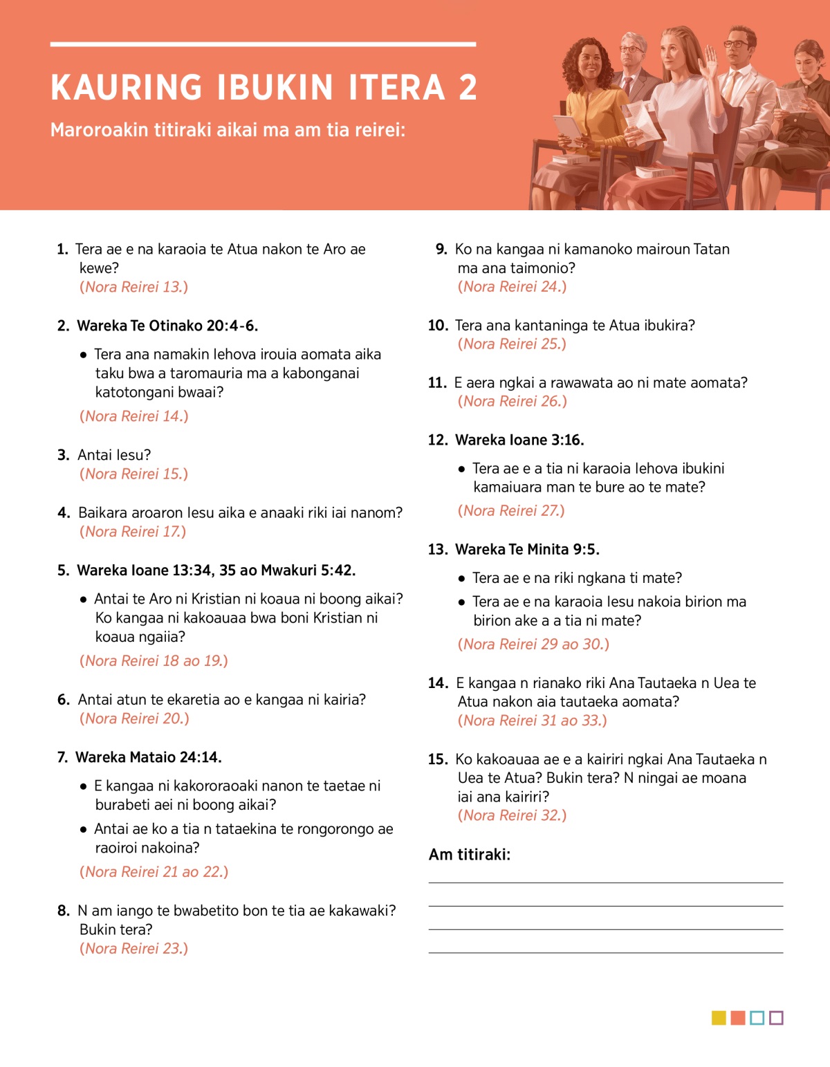 Wareka Ioane 13:34, 35 ao Mwakuri 5:42.