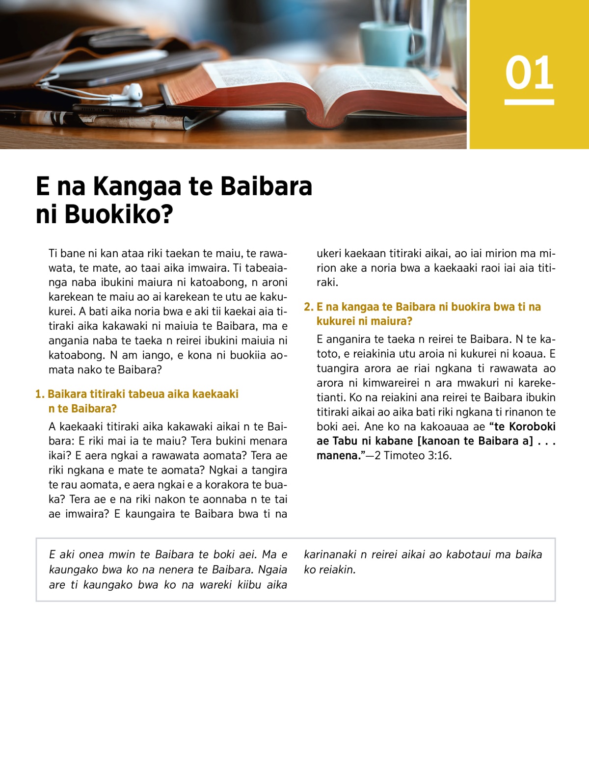 1. Baikara titiraki tabeua aika kaekaaki n te Baibara?