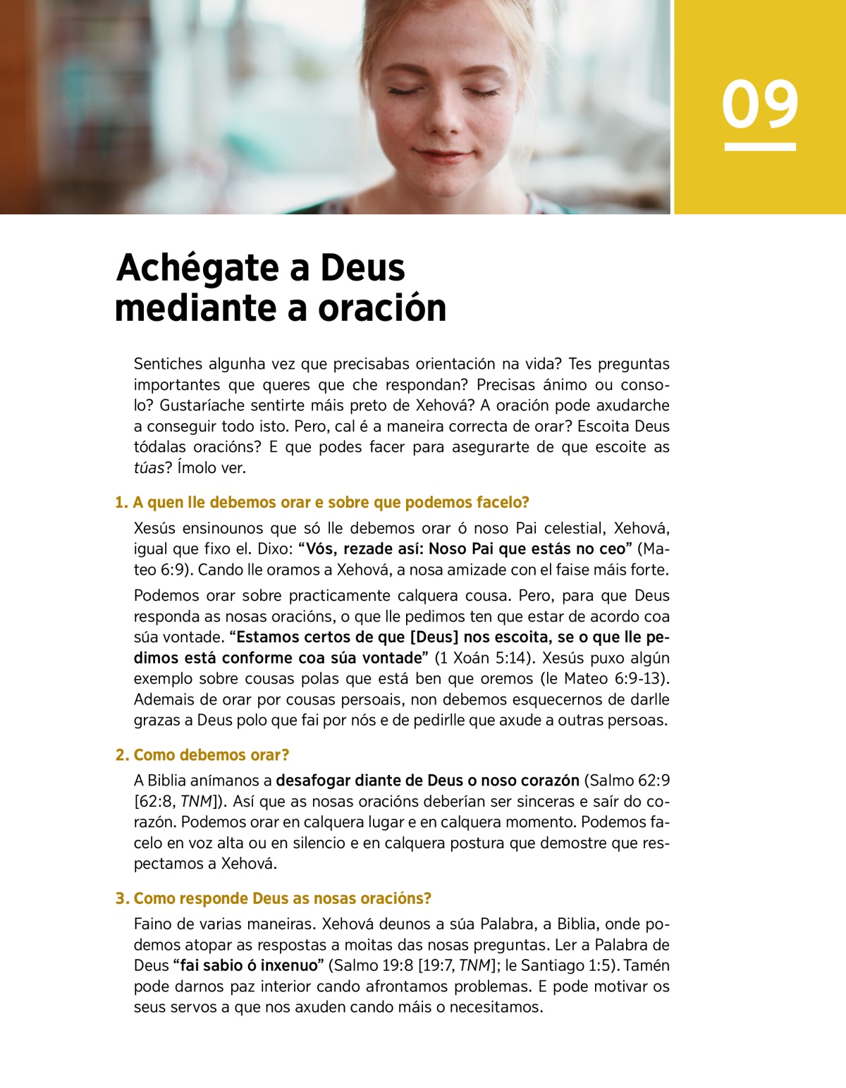 Sentiches algunha vez que precisabas orientación na vida? Tes preguntas importantes que queres que che respondan? Precisas ánimo ou consolo? Gustaríache sentirte máis preto de Xehová? A oración pode axudarche a conseguir todo isto. Pero, cal é a maneira correcta de orar? Escoita Deus tódalas oracións? E que podes facer para asegurarte de que escoite as túas? Ímolo ver.