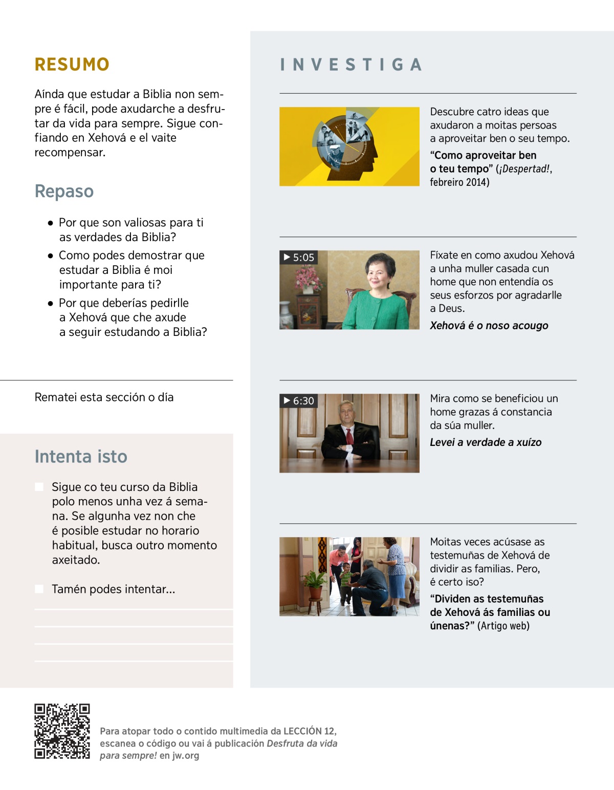 Aínda que estudar a Biblia non sempre é fácil, pode axudarche a desfrutar da vida para sempre. Sigue confiando en Xehová e el vaite recompensar.