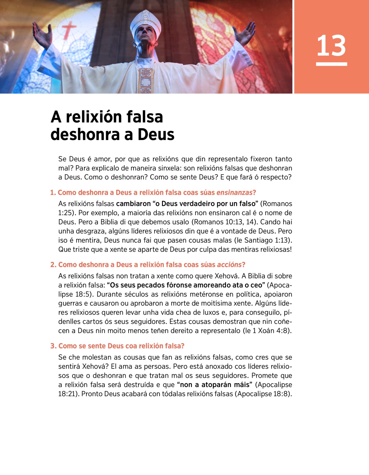 Se Deus é amor, por que as relixións que din representalo fixeron tanto mal? Para explicalo de maneira sinxela: son relixións falsas que deshonran a Deus. Como o deshonran? Como se sente Deus? E que fará ó respecto?