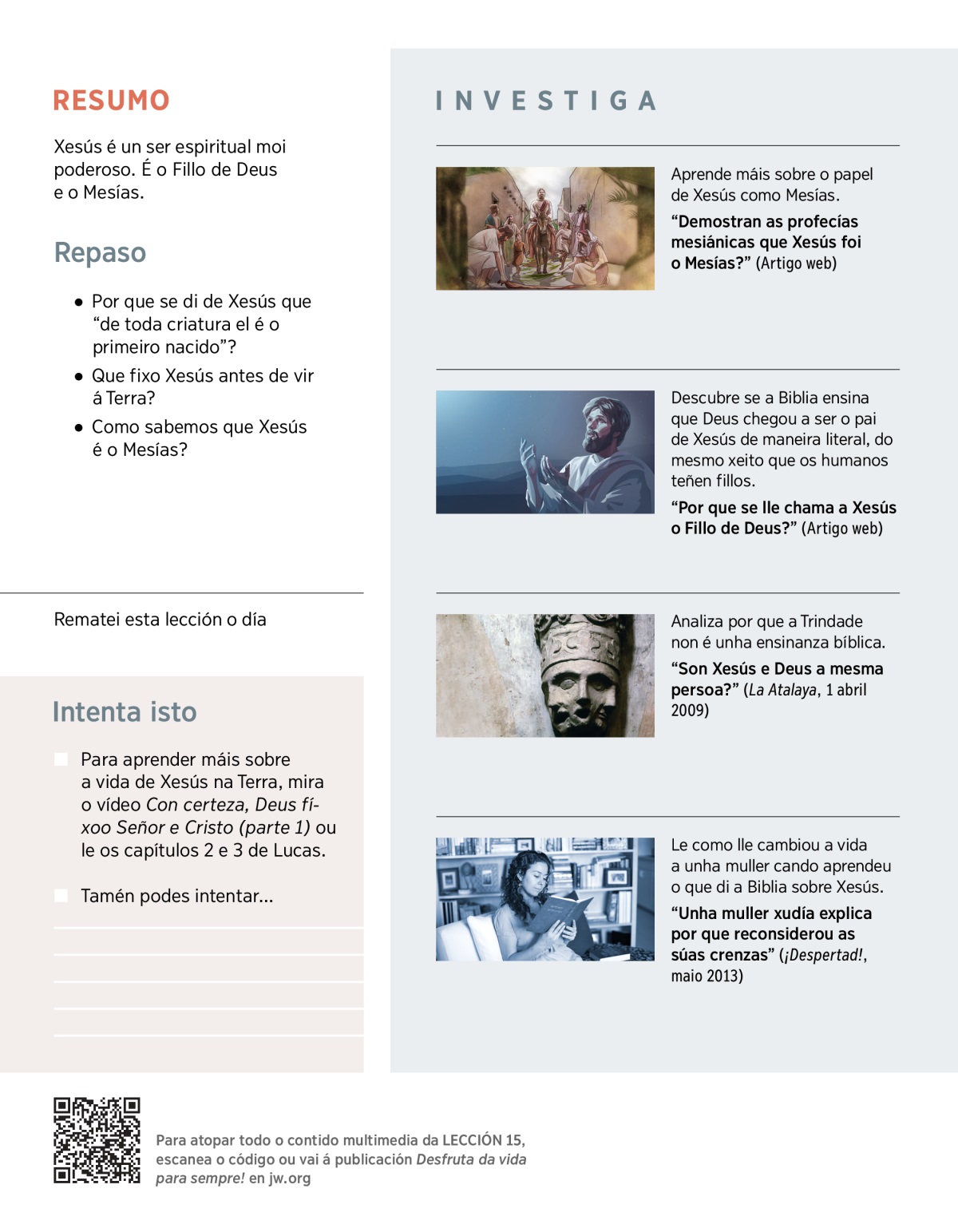 Xesús abriu o camiño para que poidamos ser amigos de Deus e ensinou a verdade sobre Xehová. A través de Xesús podemos chegar a ter vida eterna