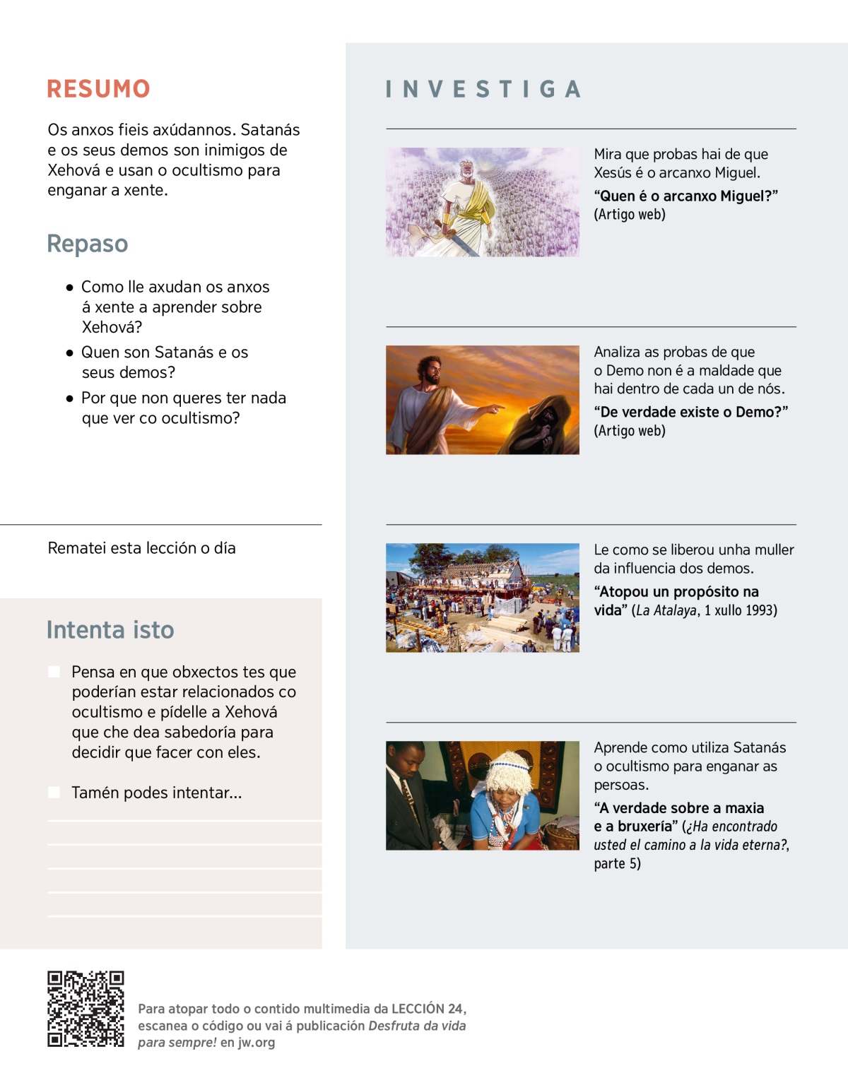 Aprende máis sobre as cousas boas que fan os anxos, sobre os perigos do ocultismo e sobre como podemos protexernos de Satanás e os demos.