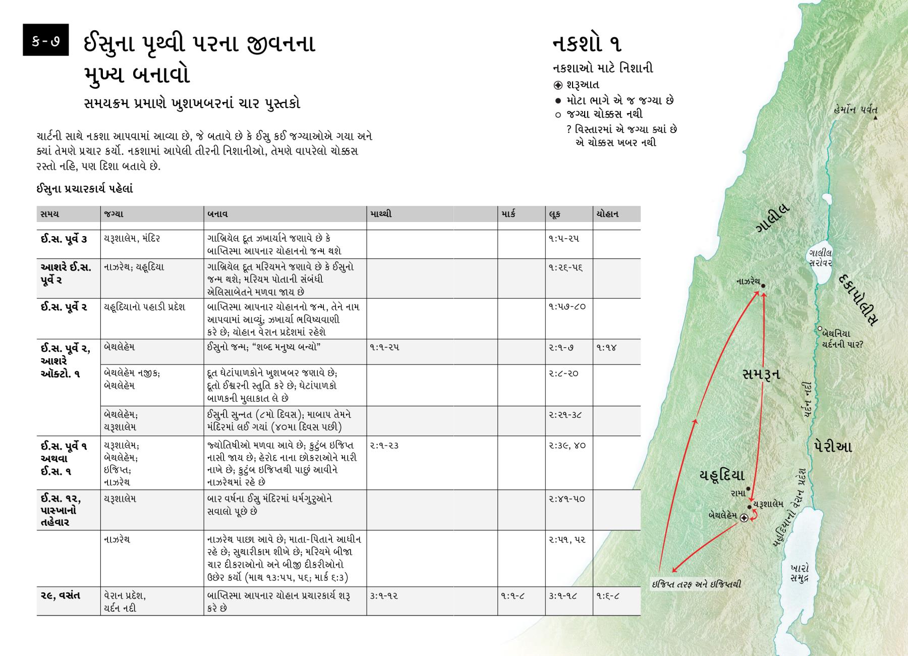 ચાર્ટની સાથે નકશા આપવામાં આવ્યા છે, જે બતાવે છે કે ઈસુ કઈ જગ્યાઓએ ગયા અને ક્યાં તેમણે પ્રચાર કર્યો. નકશામાં આપેલી તીરની નિશાનીઓ, તેમણે વાપરેલો ચોક્કસ રસ્તો નહિ, પણ દિશા બતાવે છે.