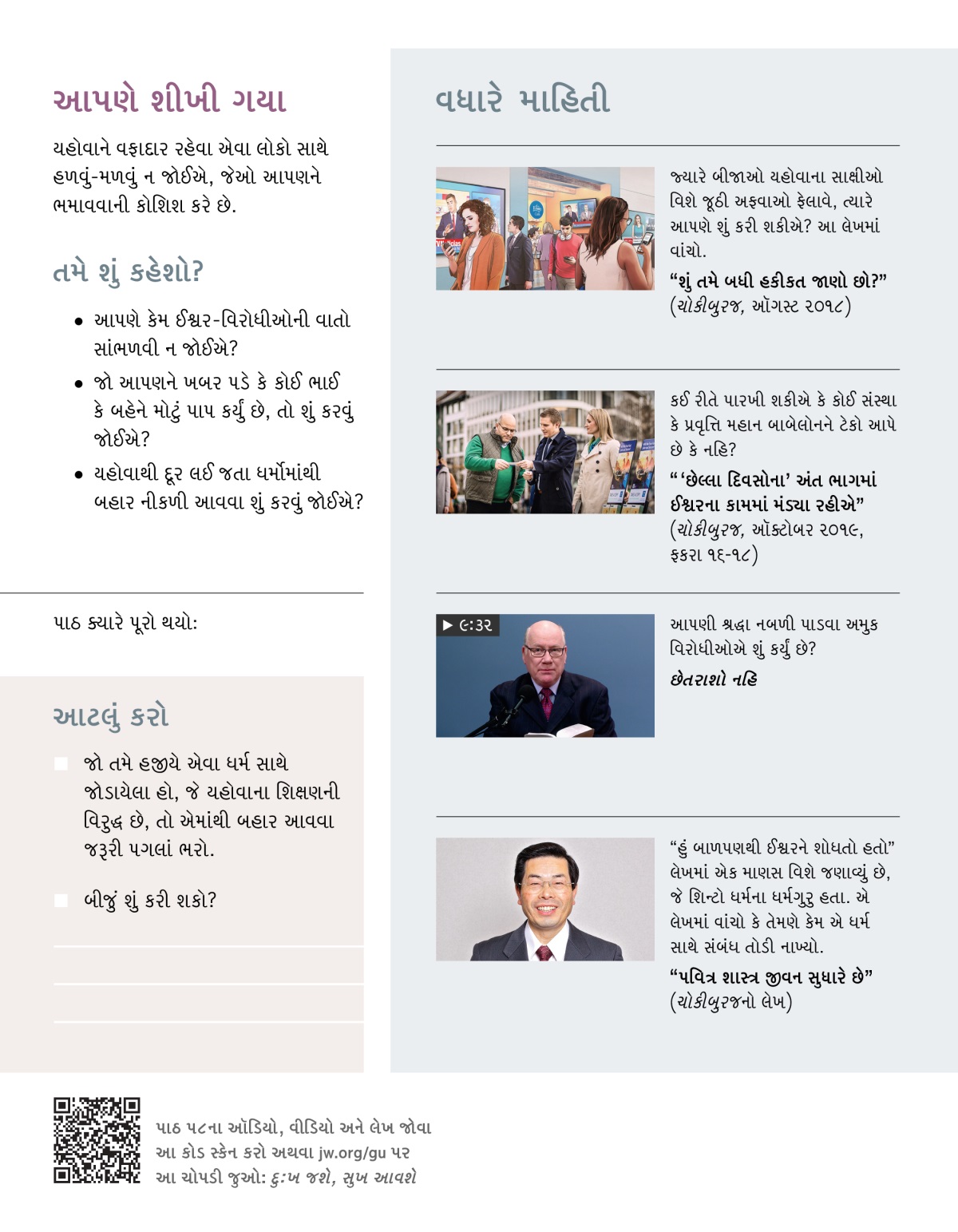 “‘છેલ્લા દિવસોના’ અંત ભાગમાં ઈશ્વરના કામમાં મંડ્યા રહીએ” (ચોકીબુરજ, ઑક્ટોબર ૨૦૧૯, ફકરા ૧૬-૧૮)