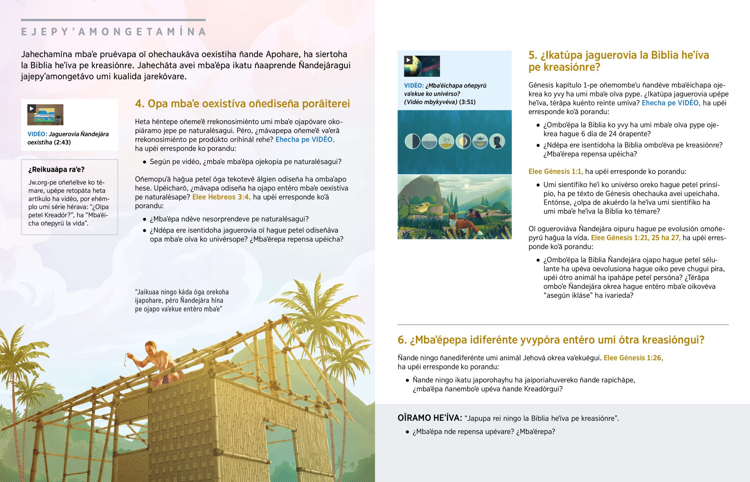 Jw.org-pe oñeñeʼẽve ko témare, upépe retopáta heta artíkulo ha vidéo, por ehémplo umi série hérava: “¿Oĩpa peteĩ Kreadór?”, ha “Mbaʼéicha oñepyrũ la vída”.