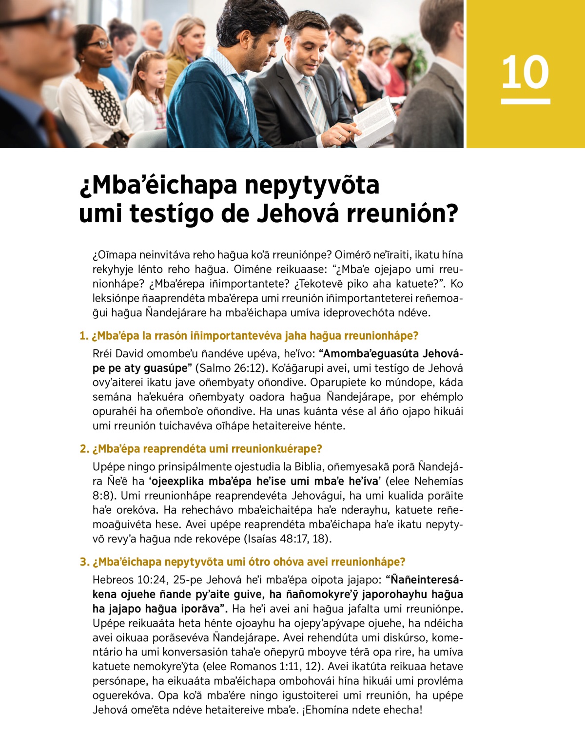 OĨRAMO HEʼÍVA: “Natekotevẽi ningo reho umi rreunionhápe, ovaletereímango restudia nde rógape la Biblia”.