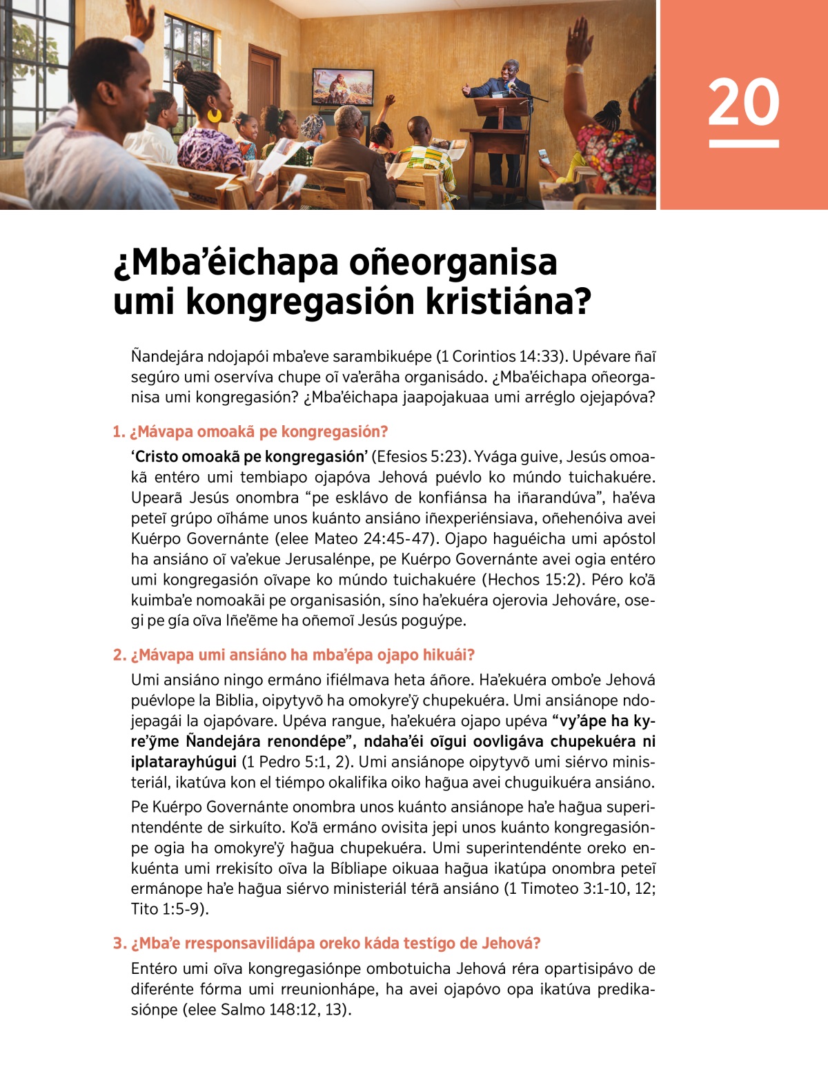 Jesús heʼi vaʼekue mbaʼe mbaʼépa ojapo vaʼerã umi ogiáva kongregasiónpe. Elee Mateo 23:8-12, ha upéi erresponde koʼã porandu: