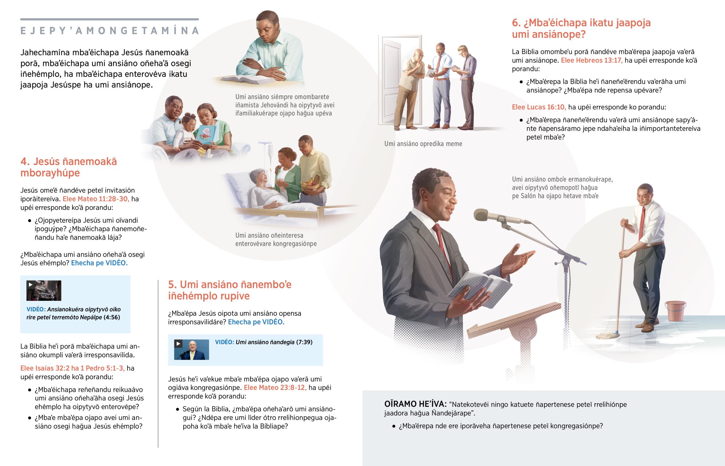 Jahechamína mbaʼéichapa Jesús ñanemoakã porã, mbaʼéichapa umi ansiáno oñehaʼã osegi iñehémplo, ha mbaʼéichapa enterovéva ikatu jaapoja Jesúspe ha umi ansiánope.