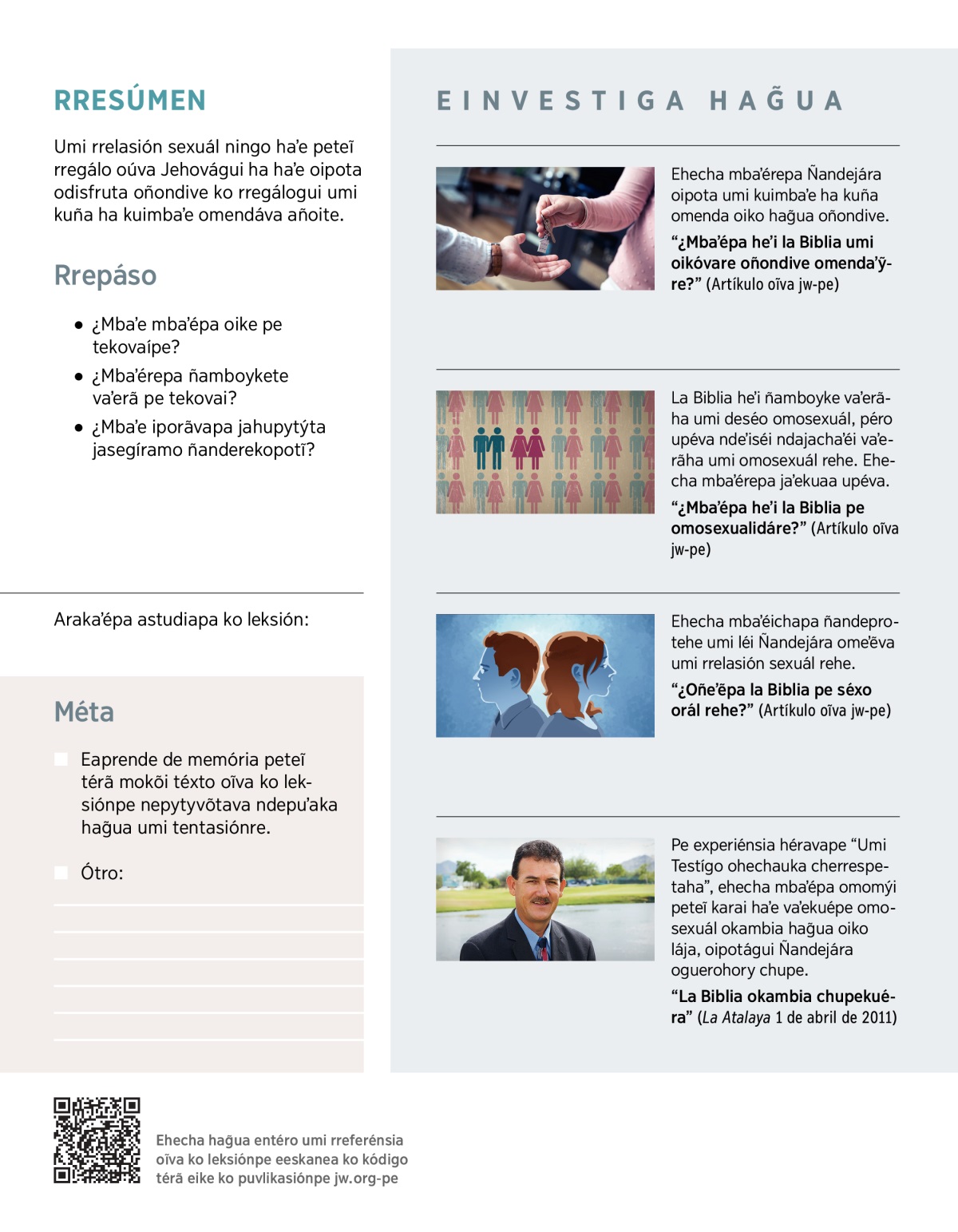 “¿Mbaʼépa heʼi la Biblia pe omosexualidáre?” (Artíkulo oĩva jw-pe)
