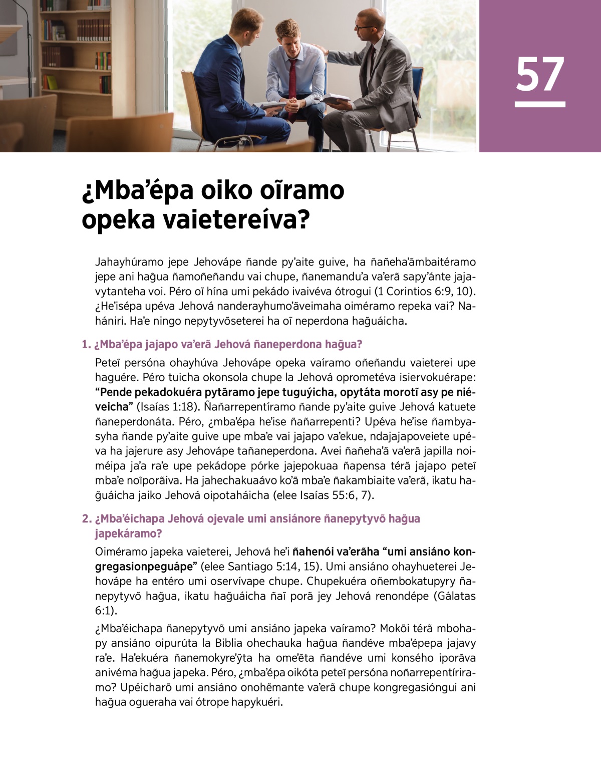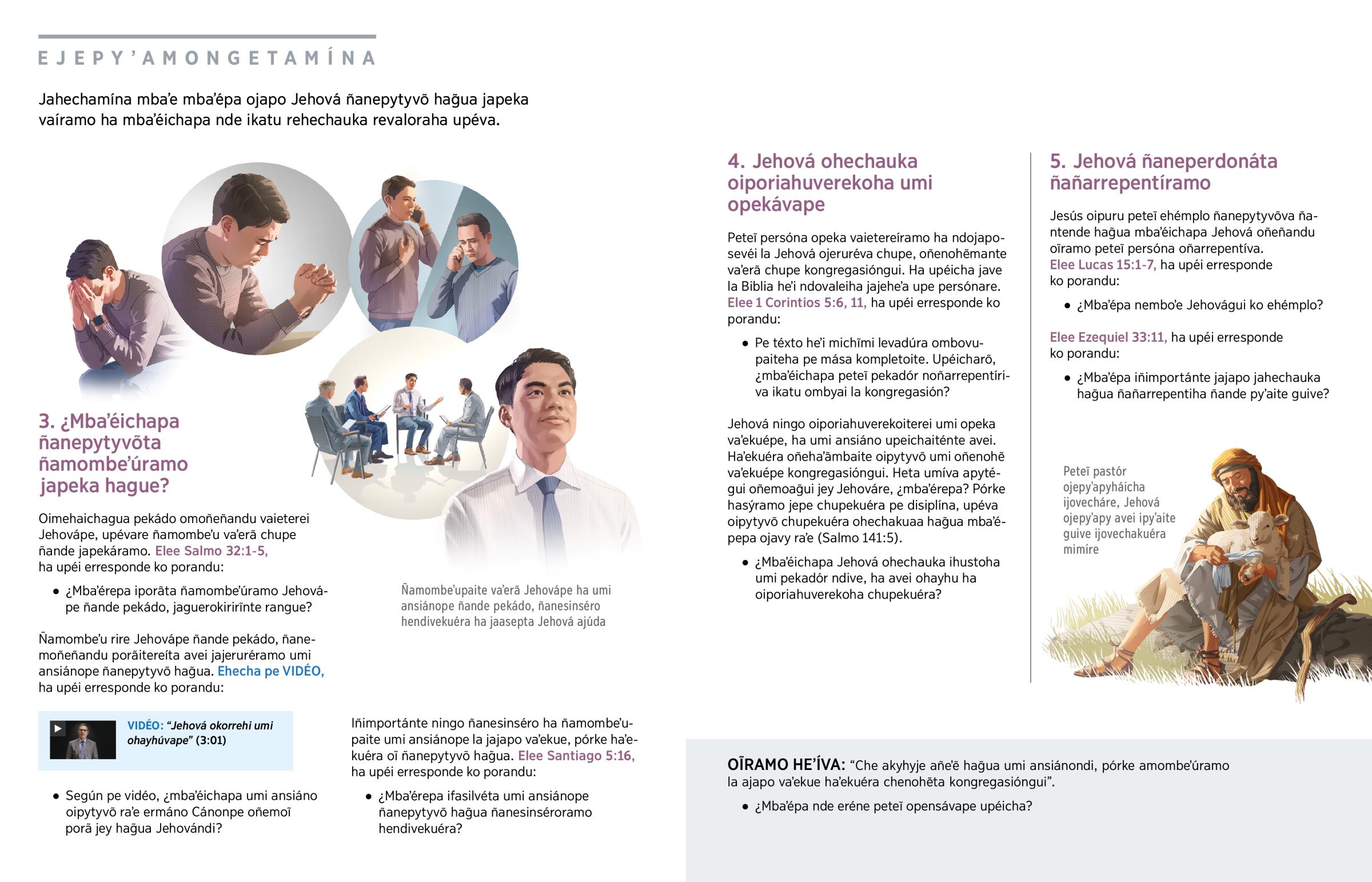 ¿Mbaʼéichapa ñanepytyvõ umi ansiáno japeka vaíramo? Mokõi térã mbohapy ansiáno oipurúta la Biblia ohechauka hag̃ua ñandéve mbaʼépepa jajavy raʼe. Haʼekuéra ñanemokyreʼỹta ha omeʼẽta ñandéve umi konsého iporãva anivéma hag̃ua japeka. Péro, ¿mbaʼépa oikóta peteĩ persóna noñarrepentíriramo? Upéicharõ umi ansiáno onohẽmante vaʼerã chupe kongregasióngui ani hag̃ua ogueraha vai ótrope hapykuéri.