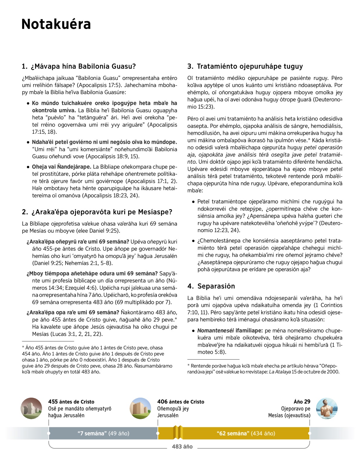 ¿Arakaʼépa opa raʼe umi 69 semána? Ñakontáramo 483 áño, pe áño 455 ántes de Cristo guive, ñag̃uahẽ áño 29 peve.a Ha kavalete upe áñope Jesús ojevautisa ha oiko chugui pe Mesías (Lucas 3:1, 2, 21, 22).