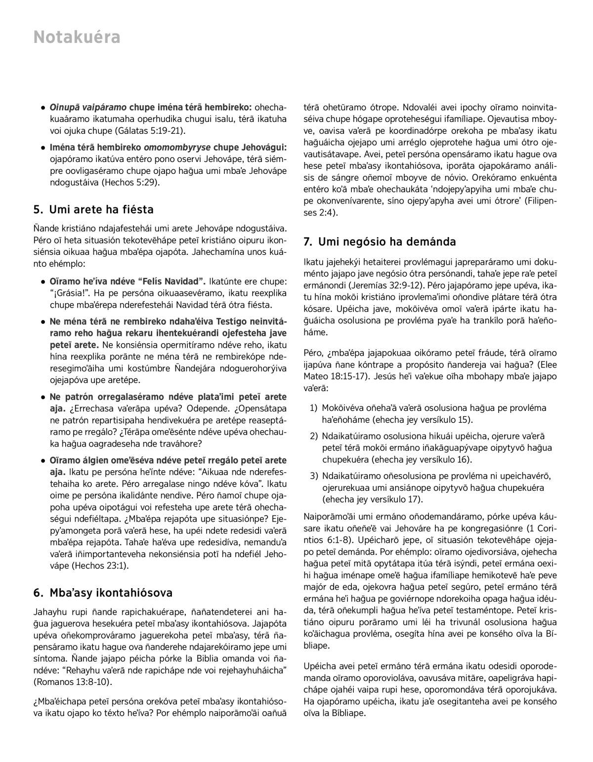 Oinupã vaipáramo chupe iména térã hembireko: ohechakuaáramo ikatumaha operhudika chugui isalu, térã ikatuha voi ojuka chupe (Gálatas 5:19-21).