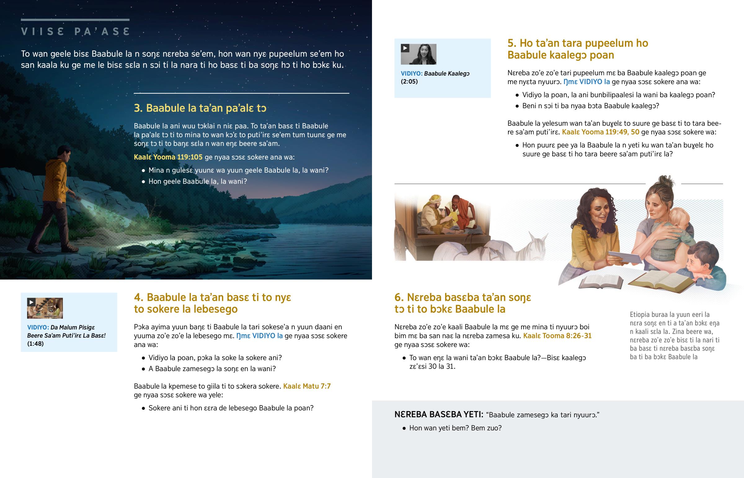 Fɔɔra: 1. Filip n de na’am mɔɔlegɔdaana la, n pa’ali Etiopia buraa la Gulesegɔ la. 2. Yehowa Sɛɛradaana ayima n tari Baabule pa’ala pɔka la a kɔma bayi.