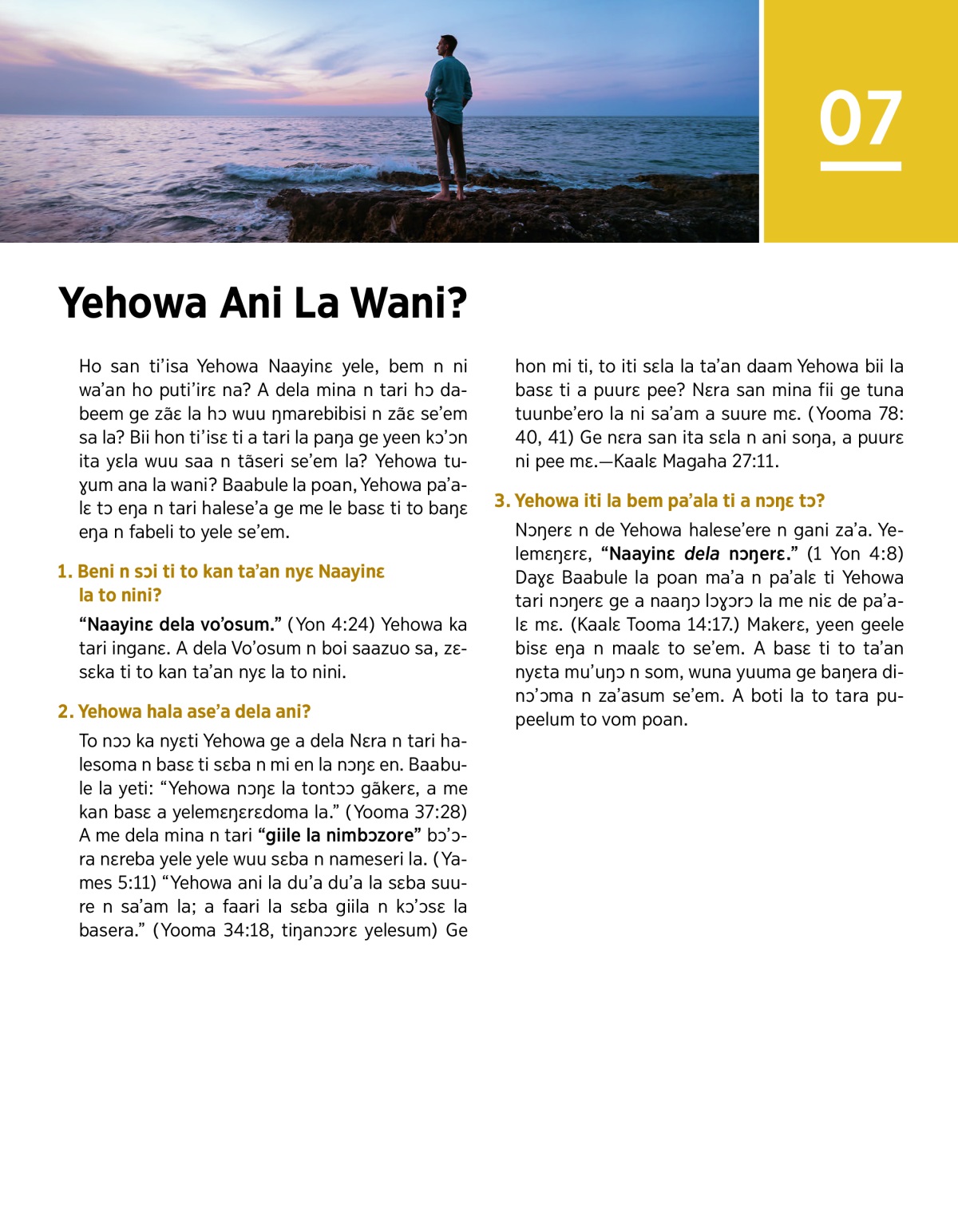 7. To wan ta’an baŋɛ Yehowa hala la a naaŋɔ lɔɣɔrɔ poan
