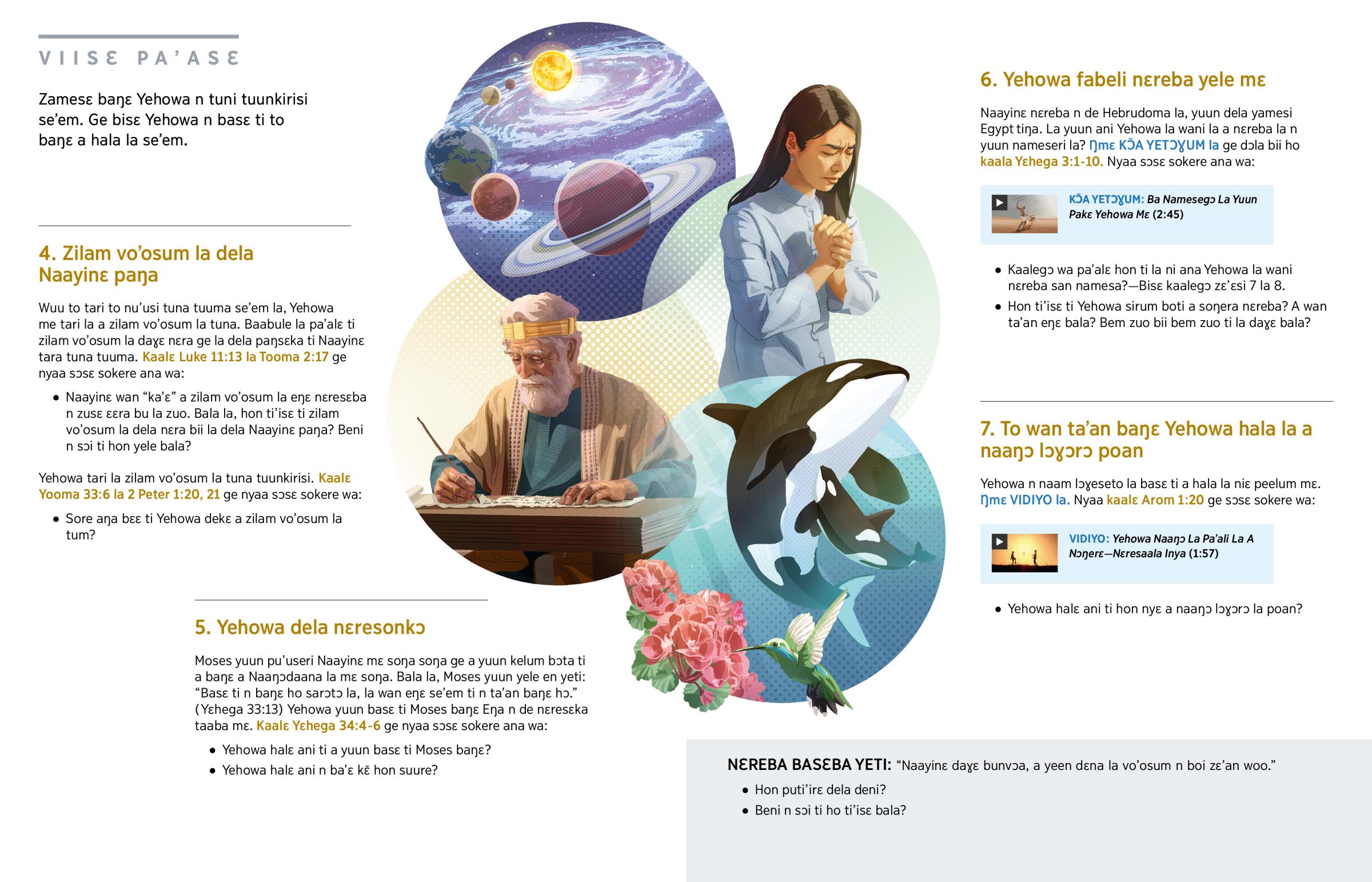 Nɔŋerɛ n de Yehowa halese’ere n gani za’a. Yelemɛŋɛrɛ, “Naayinɛ dela nɔŋerɛ.” (1 Yon 4:8) Daɣɛ Baabule la poan ma’a n pa’alɛ ti Yehowa tari nɔŋerɛ ge a naaŋɔ lɔɣɔrɔ la me niɛ de pa’alɛ mɛ. (Kaalɛ Tooma 14:17.) Makerɛ, yeen geele bisɛ eŋa n maalɛ to se’em. A basɛ ti to ta’an nyɛta mu’uŋɔ n som, wuna yuuma ge baŋera dinɔ’ɔma n za’asum se’em. A boti la to tara pupeelum to vom poan.