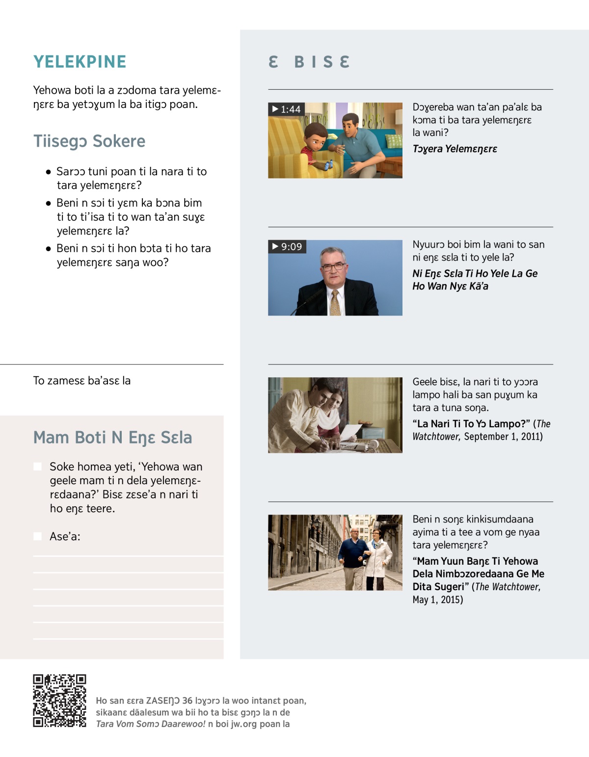 Bisɛ hon wan tara yelemɛŋɛrɛ ti hon la Yehowa ana taaba se’em ge le bisɛ hon wan ta’an eŋɛ se’em tara yelemɛŋɛrɛ ho bɔŋa woo poan.