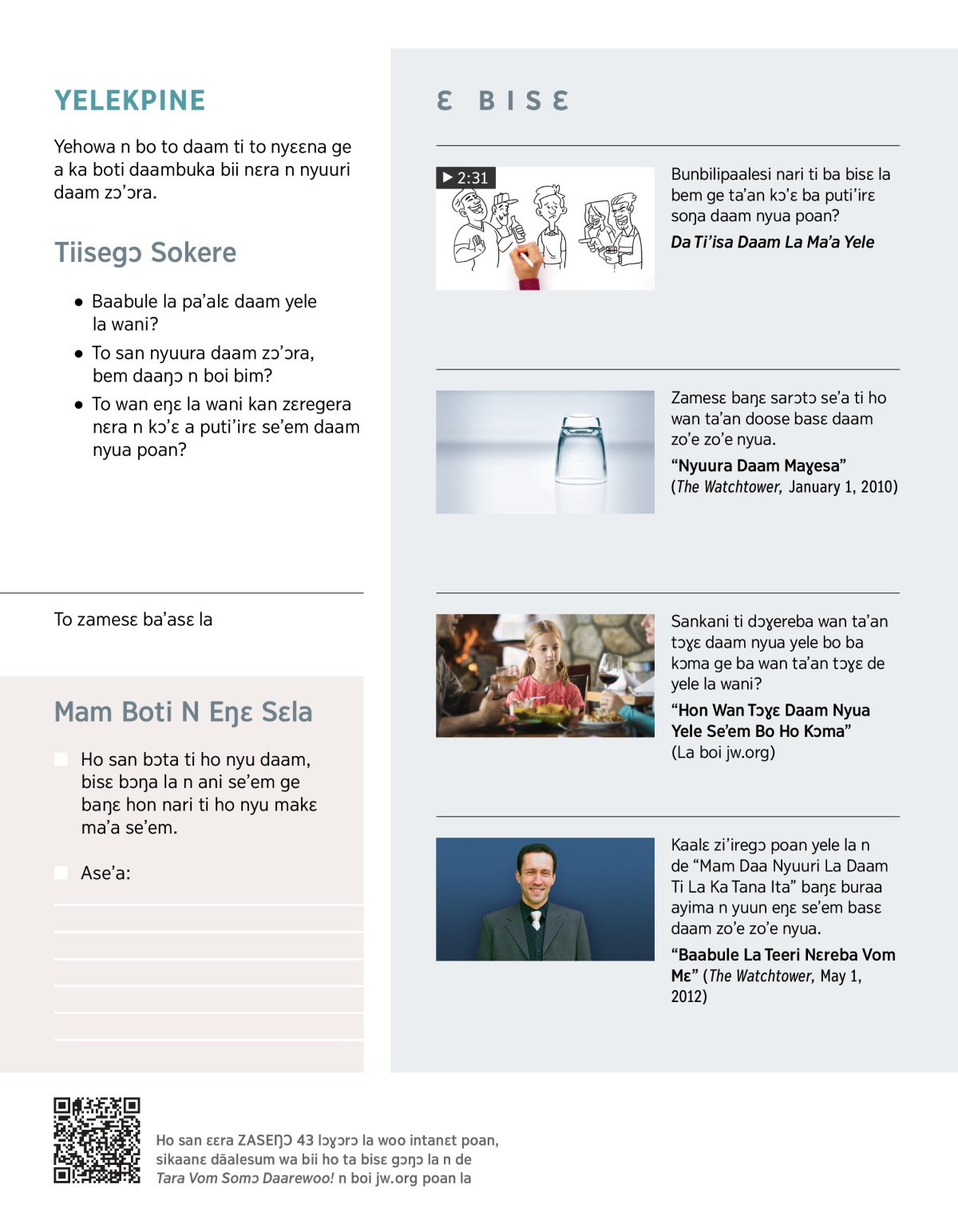“Hon Wan Tɔɣɛ Daam Nyua Yele Se’em Bo Ho Kɔma” (La boi jw.org)