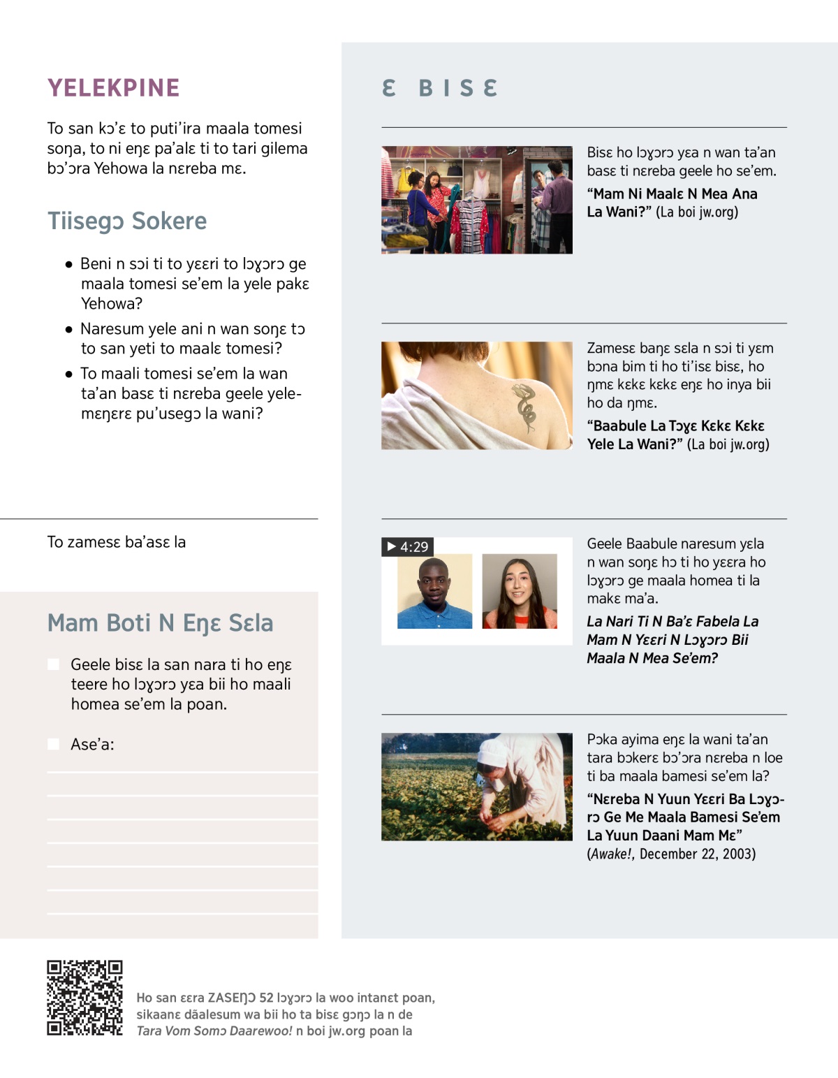 Nɛra woo lɔɣɔrɔ yɛa la eŋa n maali amea se’em boi la to’ore to’ore. To san dɔla Baabule naresum yɛla, to kan yeen maala tomesi ti la ana soŋa ma’a ge la me wan pee Yehowa puurɛ. Basɛ ya ti to bisɛ naresum yɛla wa.