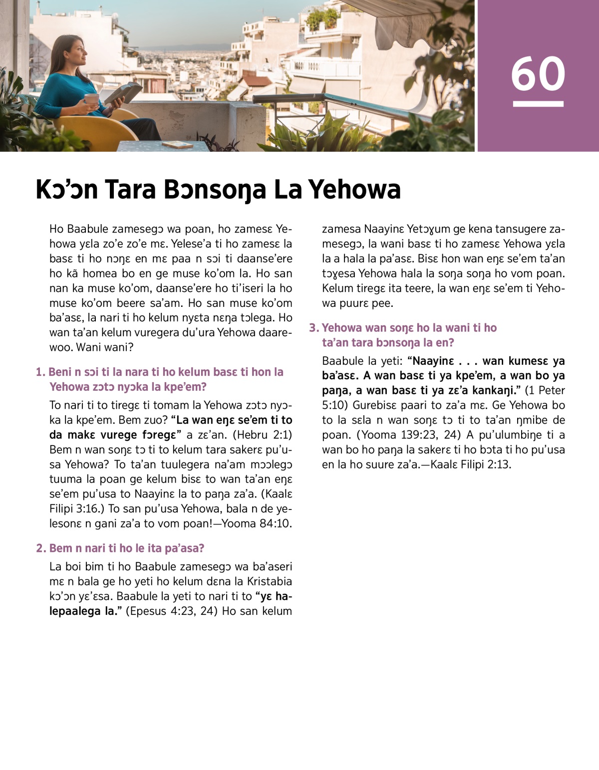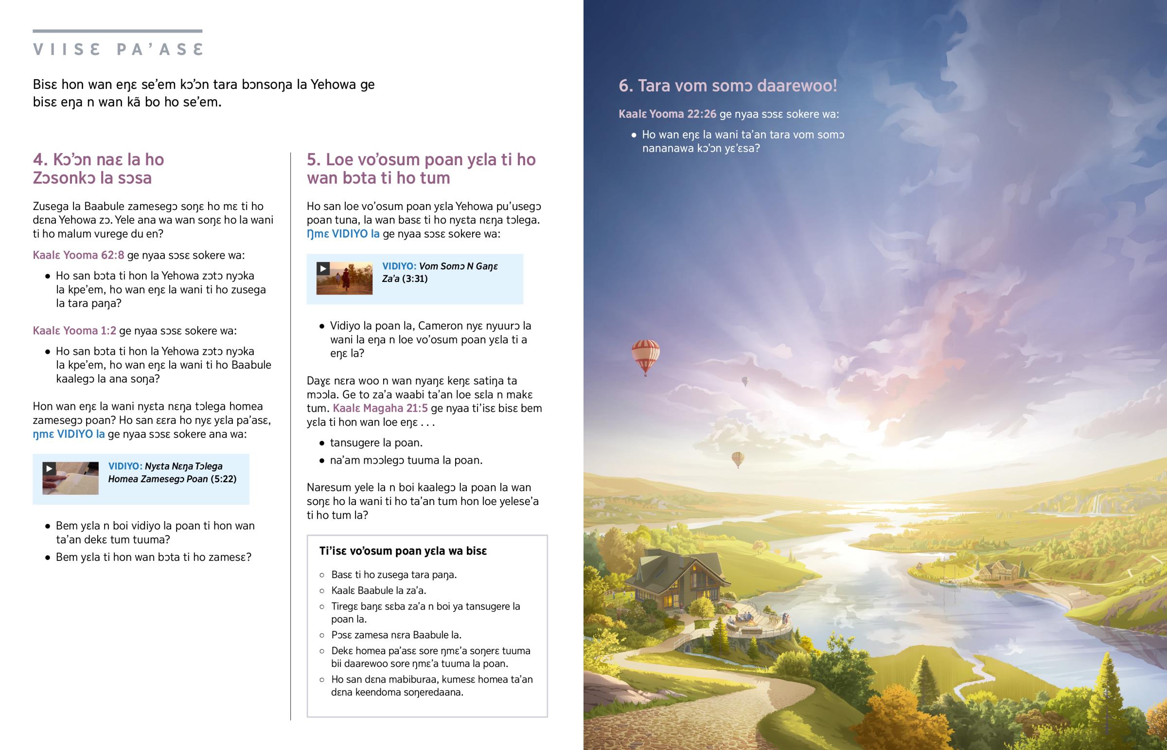 Kɔ’ɔn basɛ ti hon la Yehowa zɔtɔ nyɔka la kpe’em ge me loe vo’osum poan yɛla ti ho wan ta’an tum. Bala wan basɛ ti ho tara vom somɔ daarewoo!
