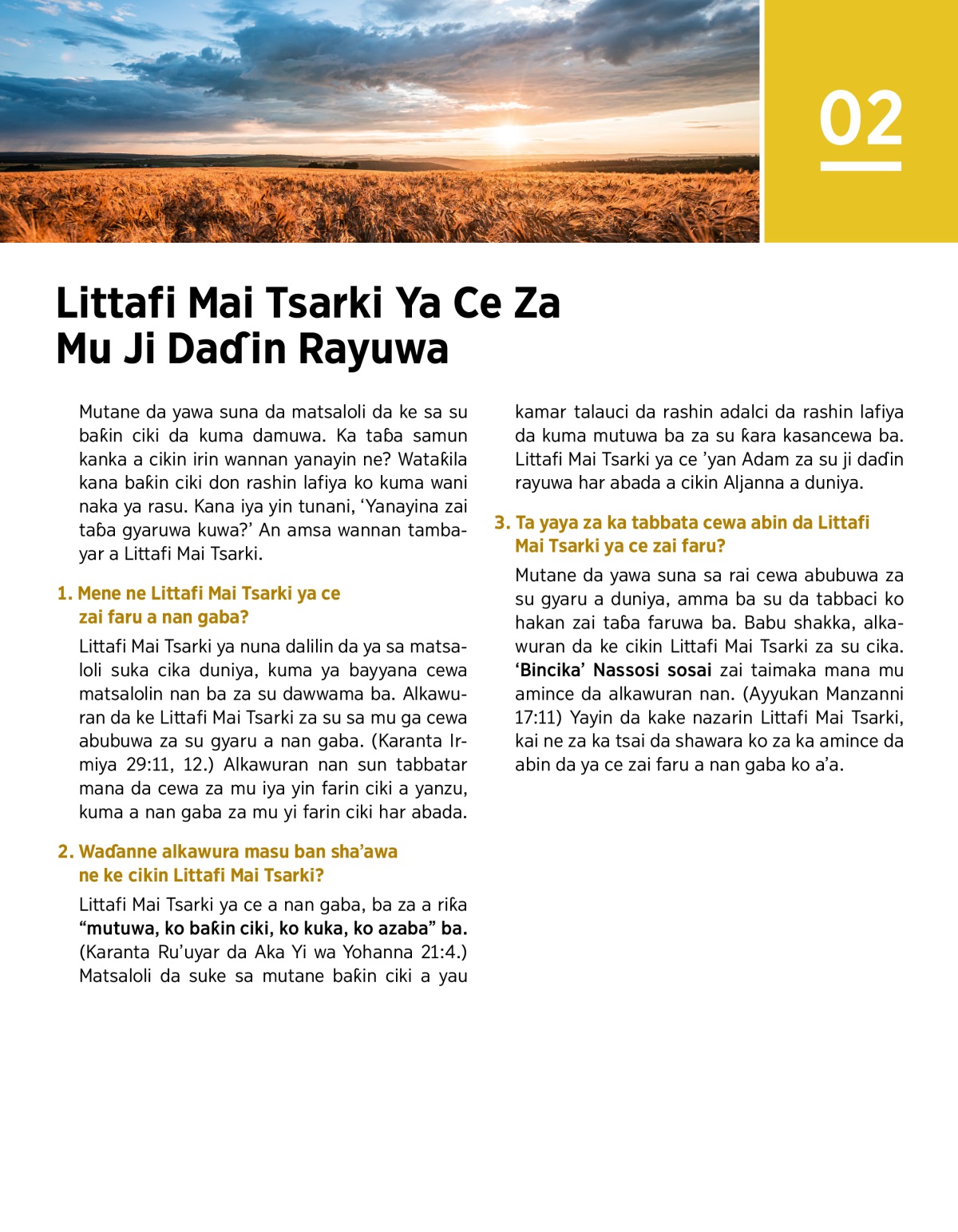Littafi Mai Tsarki ya nuna dalilin da ya sa matsaloli suka cika duniya, kuma ya bayyana cewa matsalolin nan ba za su dawwama ba. Alkawuran da ke Littafi Mai Tsarki za su sa mu ga cewa abubuwa za su gyaru a nan gaba. (Karanta Irmiya 29:11, 12.) Alkawuran nan sun tabbatar mana da cewa za mu iya yin farin ciki a yanzu, kuma a nan gaba za mu yi farin ciki har abada.
