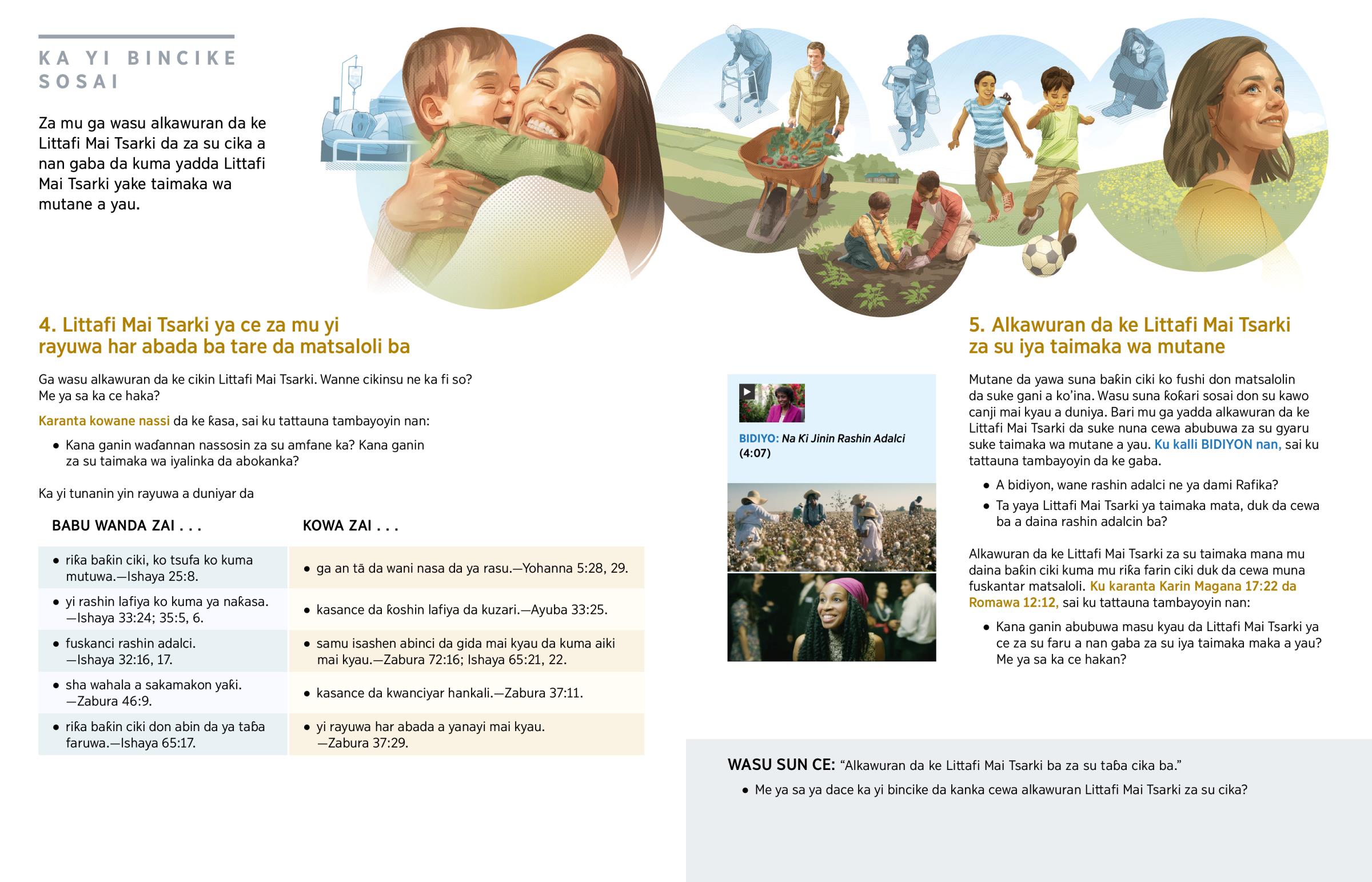 Mutane da yawa suna baƙin ciki ko fushi don matsalolin da suke gani a ko’ina. Wasu suna ƙoƙari sosai don su kawo canji mai kyau a duniya. Bari mu ga yadda alkawuran da ke Littafi Mai Tsarki da suke nuna cewa abubuwa za su gyaru suke taimaka wa mutane a yau. Ku kalli BIDIYON nan, sai ku tattauna tambayoyin da ke gaba.