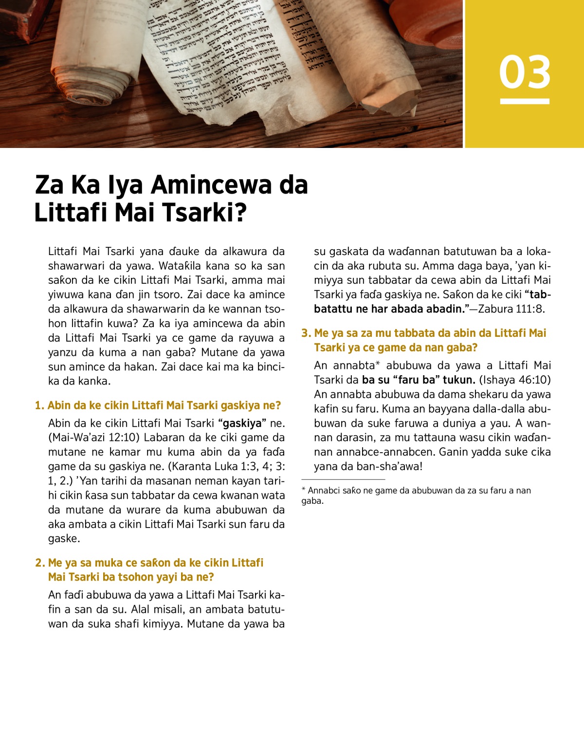 Littafi Mai Tsarki yana ɗauke da alkawura da shawarwari da yawa. Wataƙila kana so ka san saƙon da ke cikin Littafi Mai Tsarki, amma mai yiwuwa kana ɗan jin tsoro. Zai dace ka amince da alkawura da shawarwarin da ke wannan tsohon littafin kuwa? Za ka iya amincewa da abin da Littafi Mai Tsarki ya ce game da rayuwa a yanzu da kuma a nan gaba? Mutane da yawa sun amince da hakan. Zai dace kai ma ka bincika da kanka.