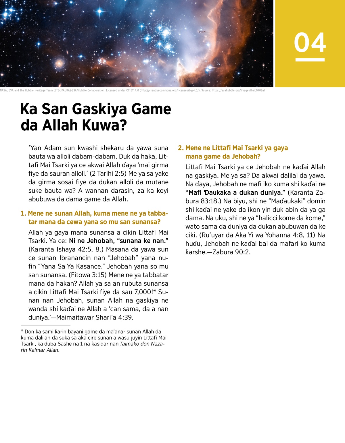 1. Mene ne sunan Allah, kuma mene ne ya tabbatar mana da cewa yana so mu san sunansa?