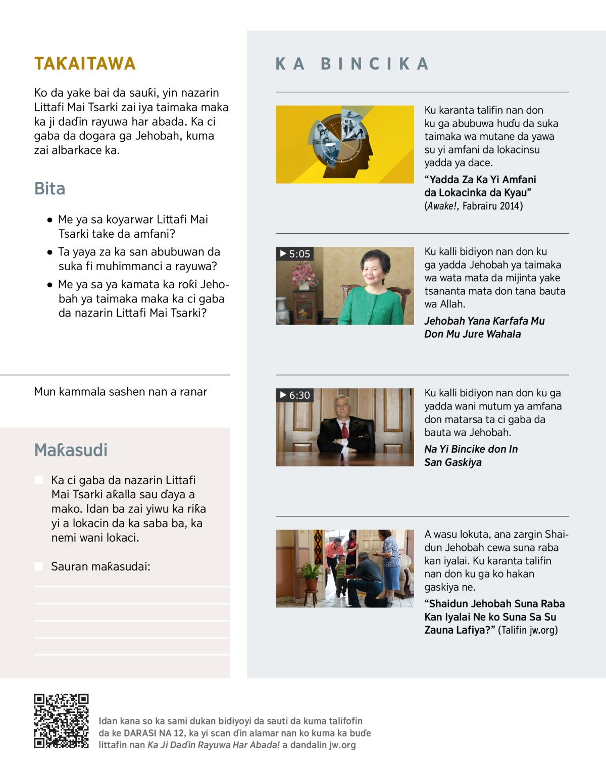 Ku karanta Ibraniyawa 11:6, sai ku tattauna tambayoyin nan: