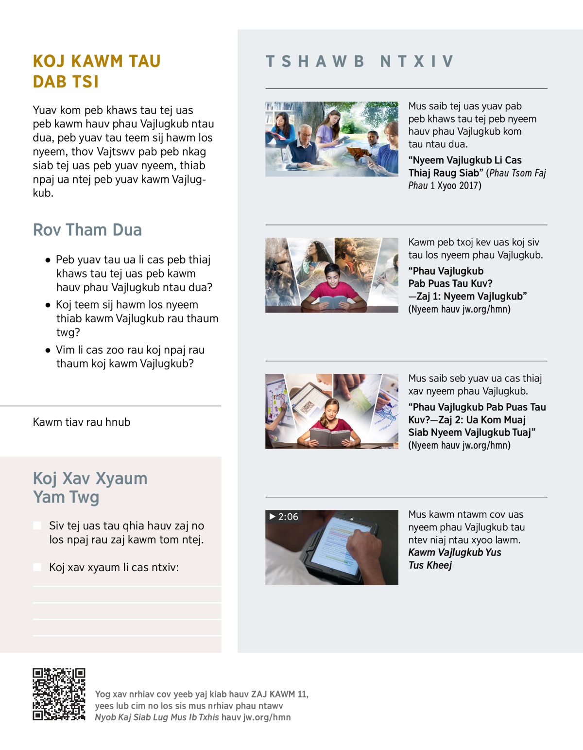 “Phau Vajlugkub Pab Puas Tau Kuv?—Zaj 1: Nyeem Vajlugkub” (Nyeem hauv jw.org/hmn)