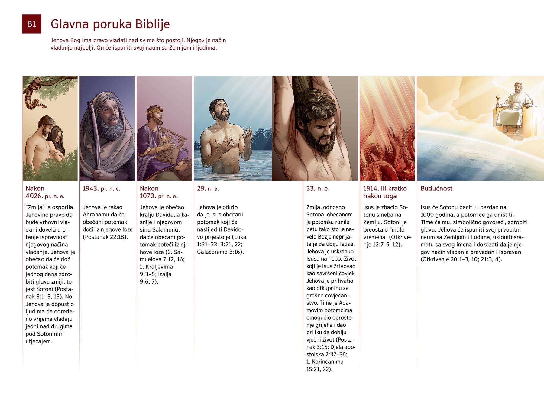 Nakon 4026. pr. n. e. “Zmija” je osporila Jehovino pravo da bude vrhovni vladar i dovela u pitanje ispravnost njegovog načina vladanja. Jehova je obećao da će doći potomak koji će jednog dana zdrobiti glavu zmiji, to jest Sotoni (Postanak 3:1–5, 15). No Jehova je dopustio ljudima da određeno vrijeme vladaju jedni nad drugima pod Sotoninim utjecajem. |