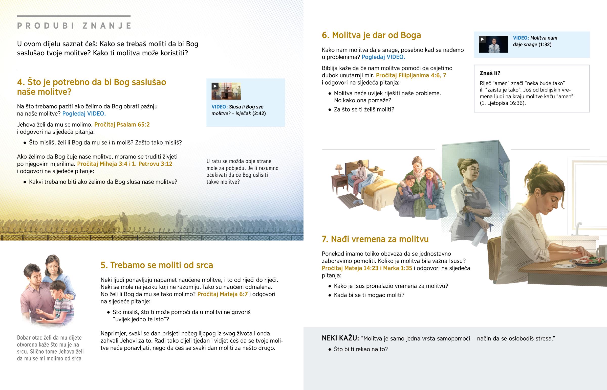 Nađeš li se nekad u situaciji da ne znaš što učiniti i da ti treba savjet? Muče li te neka pitanja na koja bi volio dobiti odgovor? Trebaš li ponekad utjehu ili oslonac u životu? Bi li volio da ti Jehova bude blizak prijatelj? U svemu tome može ti pomoći molitva. Ali kako se trebamo moliti? Sluša li Bog sve molitve? Što trebaš raditi da bi Bog saslušao tvoje molitve? Pogledajmo.
