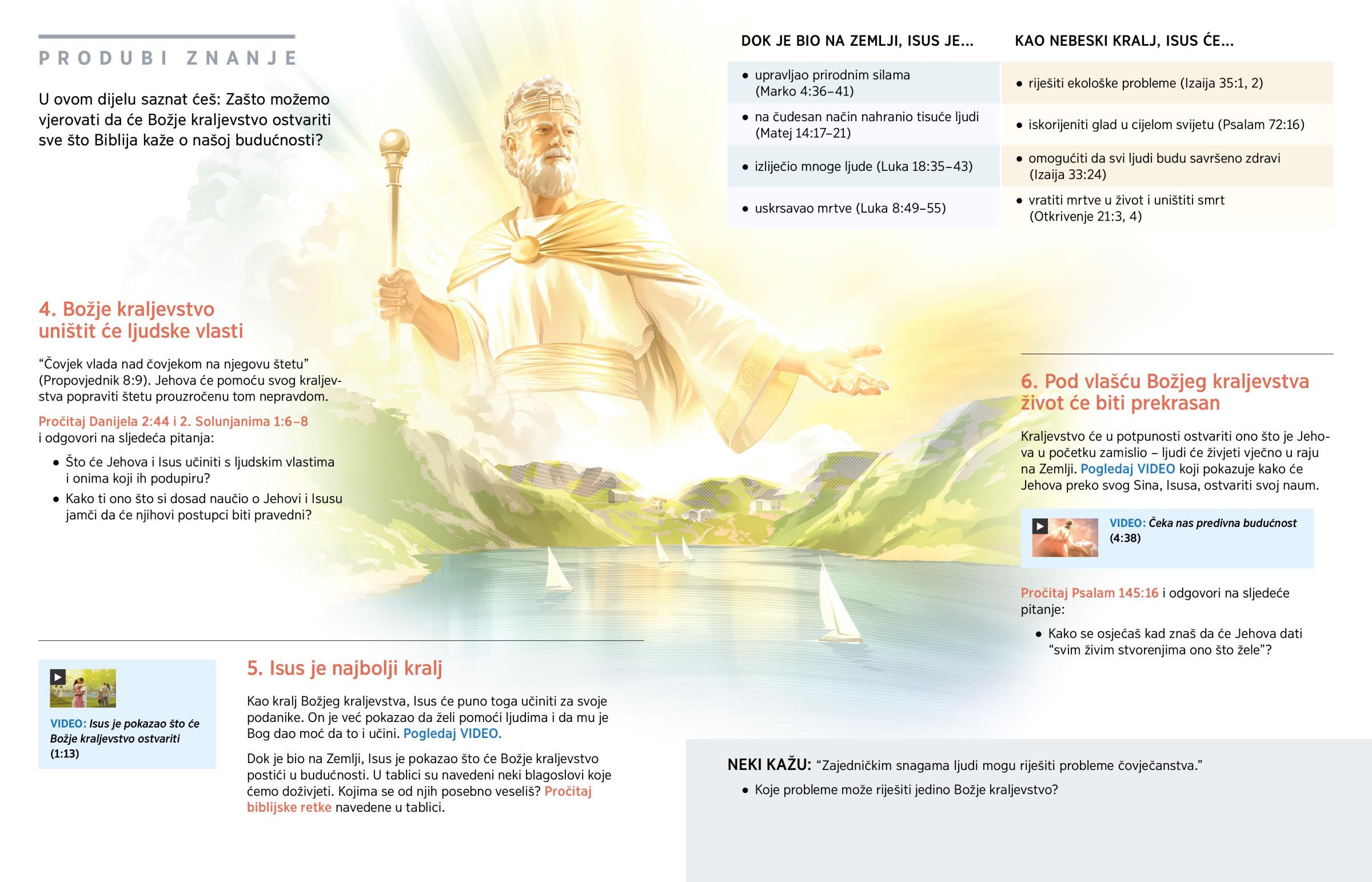 Kao kralj Božjeg kraljevstva, Isus će puno toga učiniti za svoje podanike. On je već pokazao da želi pomoći ljudima i da mu je Bog dao moć da to i učini. Pogledaj VIDEO.