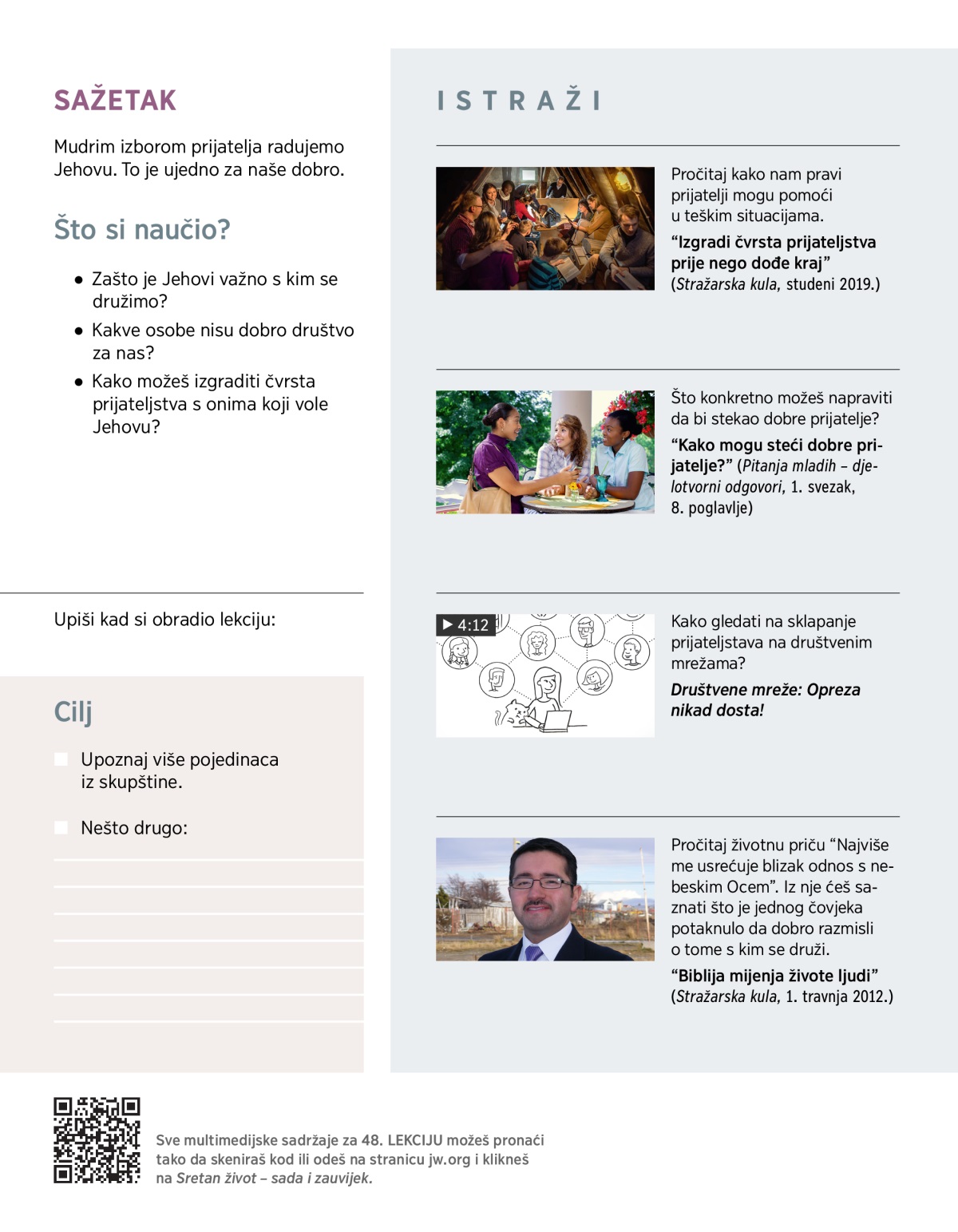 U ovom dijelu saznat ćeš: Zašto je izbor prijatelja tako važan? Kako možeš steći prijatelje koji će dobro utjecati na tebe i obogatiti tvoj život?