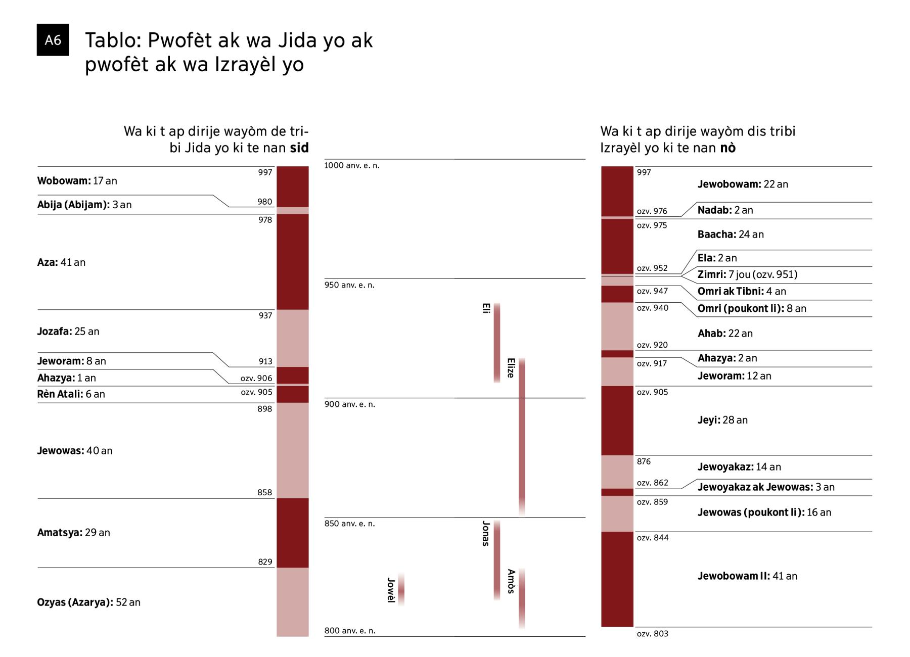Tablo: Pwofèt ak wa Jida yo ak pwofèt ak wa Izrayèl yo (1ye pati)