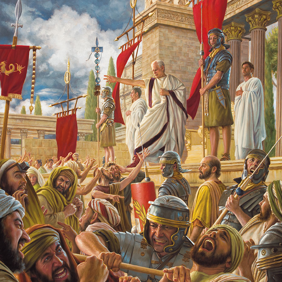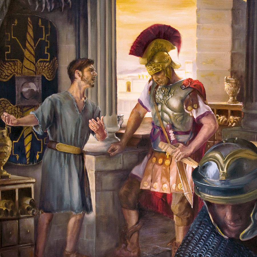 Paj 190 Neve Pòl la k ap pale ak Klod Lizyas nan Fò Antónya a, sandout, se la yo te met Pòl nan prizon. Nou wè tanp Ewòd la nan fenèt la.