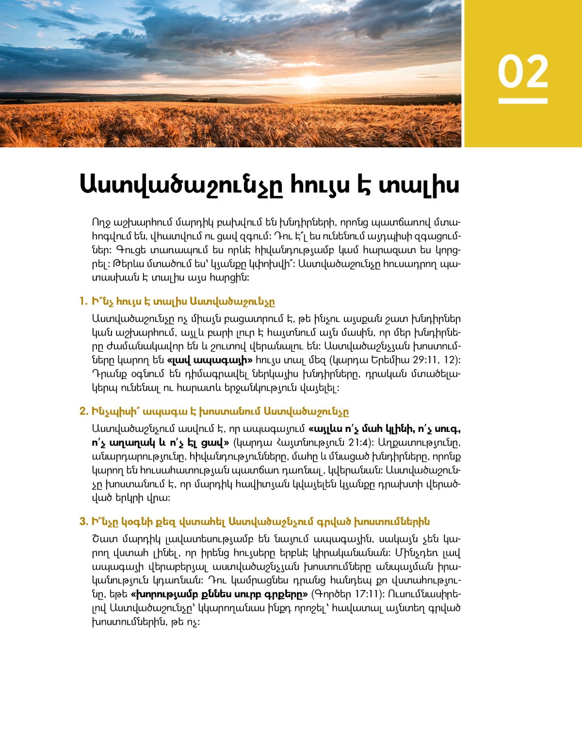 Երջանիկ ապագա խոստանալով՝ Աստվածաշունչը մեզ հույս է տալիս և օգնում է դիմագրավել խնդիրները։