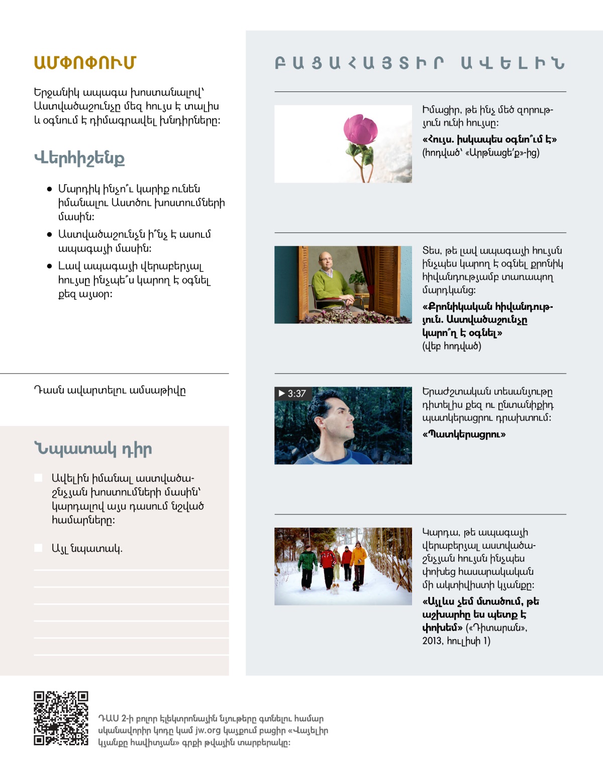 Ապագայի վերաբերյալ աստվածաշնչյան խոստումներին հավատալը կարո՞ղ է այսօր իսկ բարելավել քո կյանքը։ Ինչո՞ւ ես այդպես կարծում։