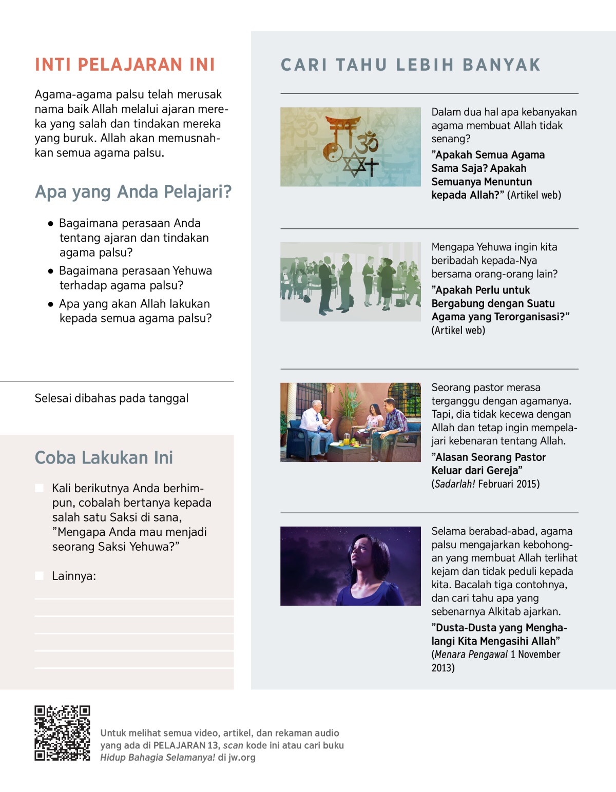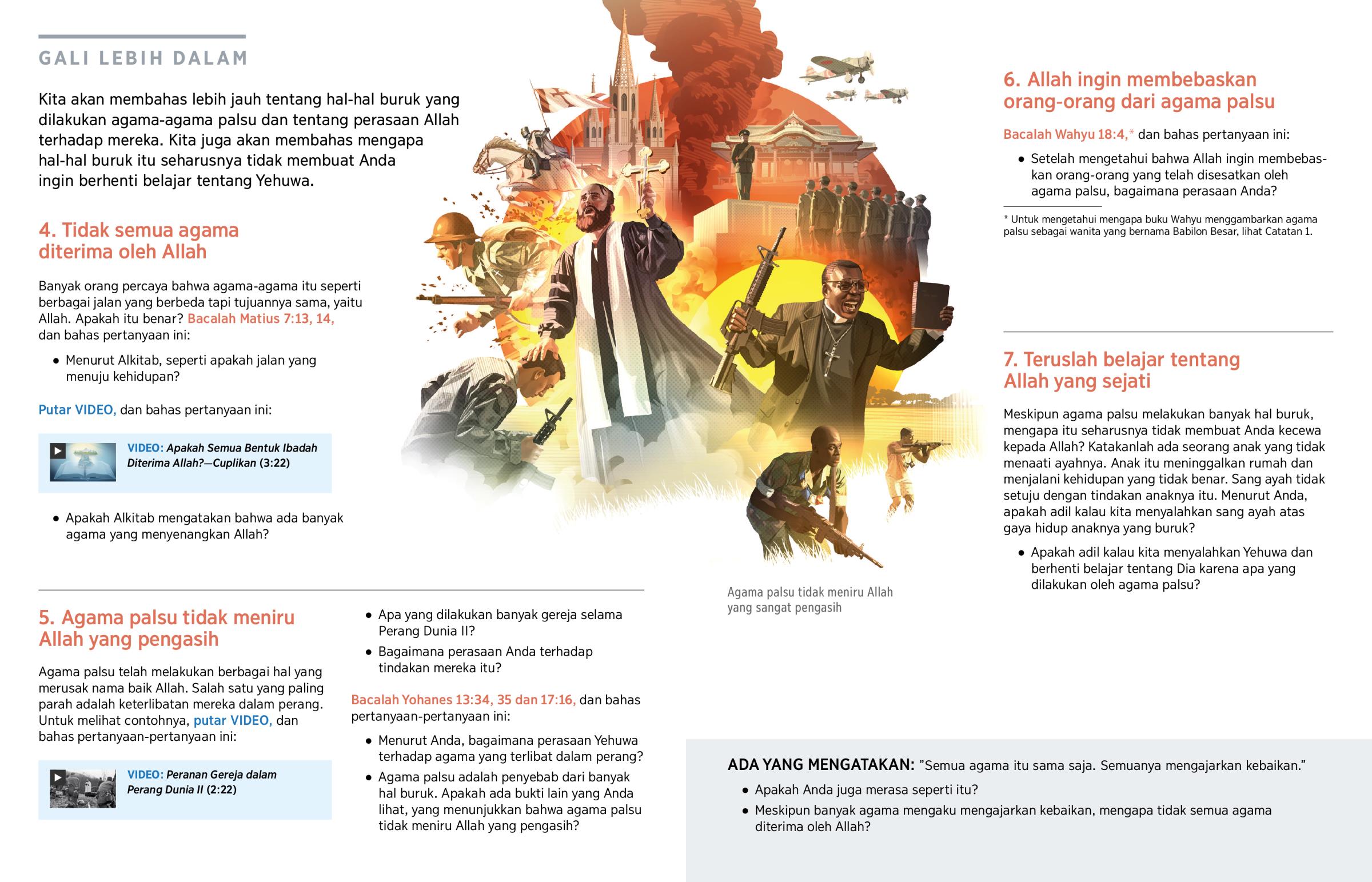 Kita akan membahas lebih jauh tentang hal-hal buruk yang dilakukan agama-agama palsu dan tentang perasaan Allah terhadap mereka. Kita juga akan membahas mengapa hal-hal buruk itu seharusnya tidak membuat Anda ingin berhenti belajar tentang Yehuwa.