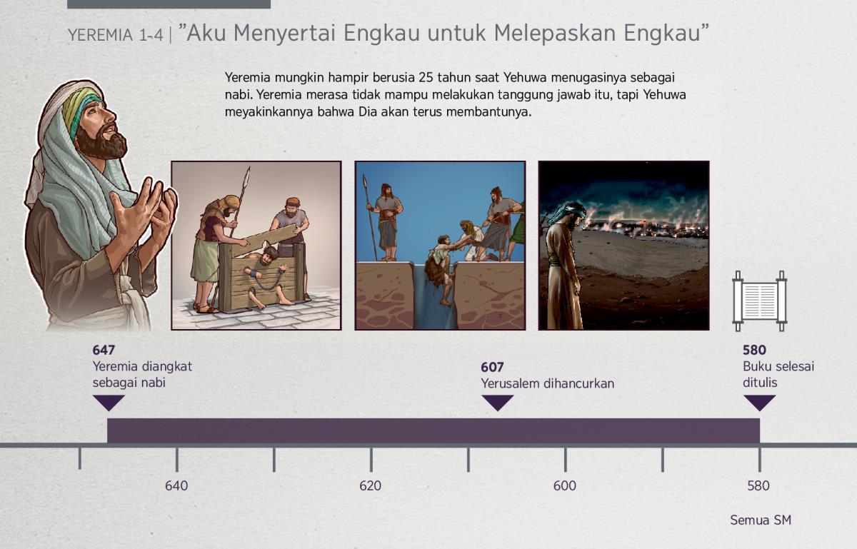 Yeremia mungkin hampir berusia 25 tahun saat Yehuwa menugasinya sebagai nabi. Yeremia merasa tidak mampu melakukan tanggung jawab itu, tapi Yehuwa meyakinkannya bahwa Dia akan terus membantunya.