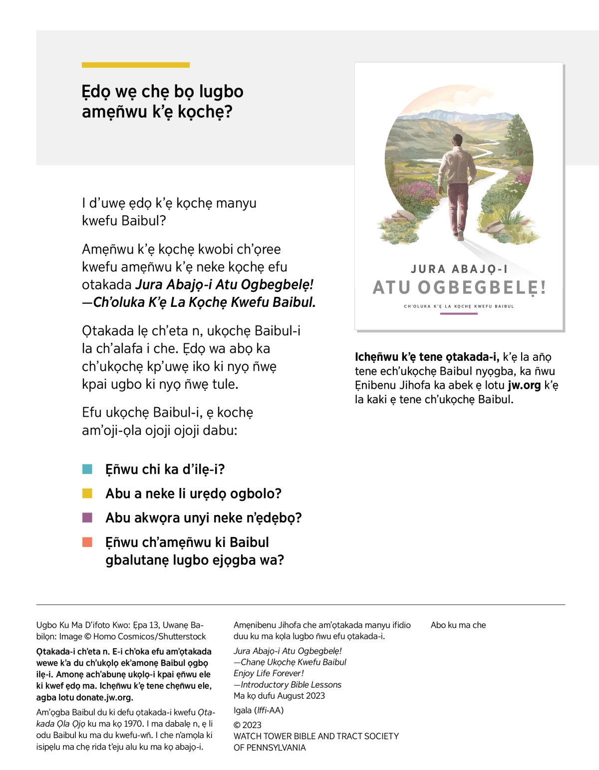 Amẹñwu k’ẹ kọchẹ kwobi ch’ọree kwefu amẹñwu k’ẹ neke kọchẹ efu otakada Jura Abajọ-i Atu Ogbegbelẹ!—Ch’oluka K’ẹ La Kọchẹ Kwefu Baibul.
