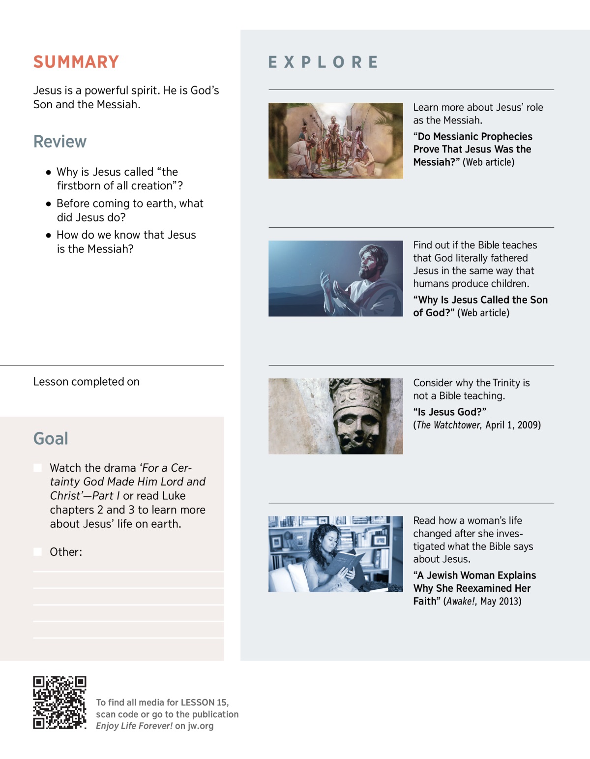 The Bible stresses the importance of learning about Jesus and his role. Read John 14:6 and 17:3, and then discuss this question: