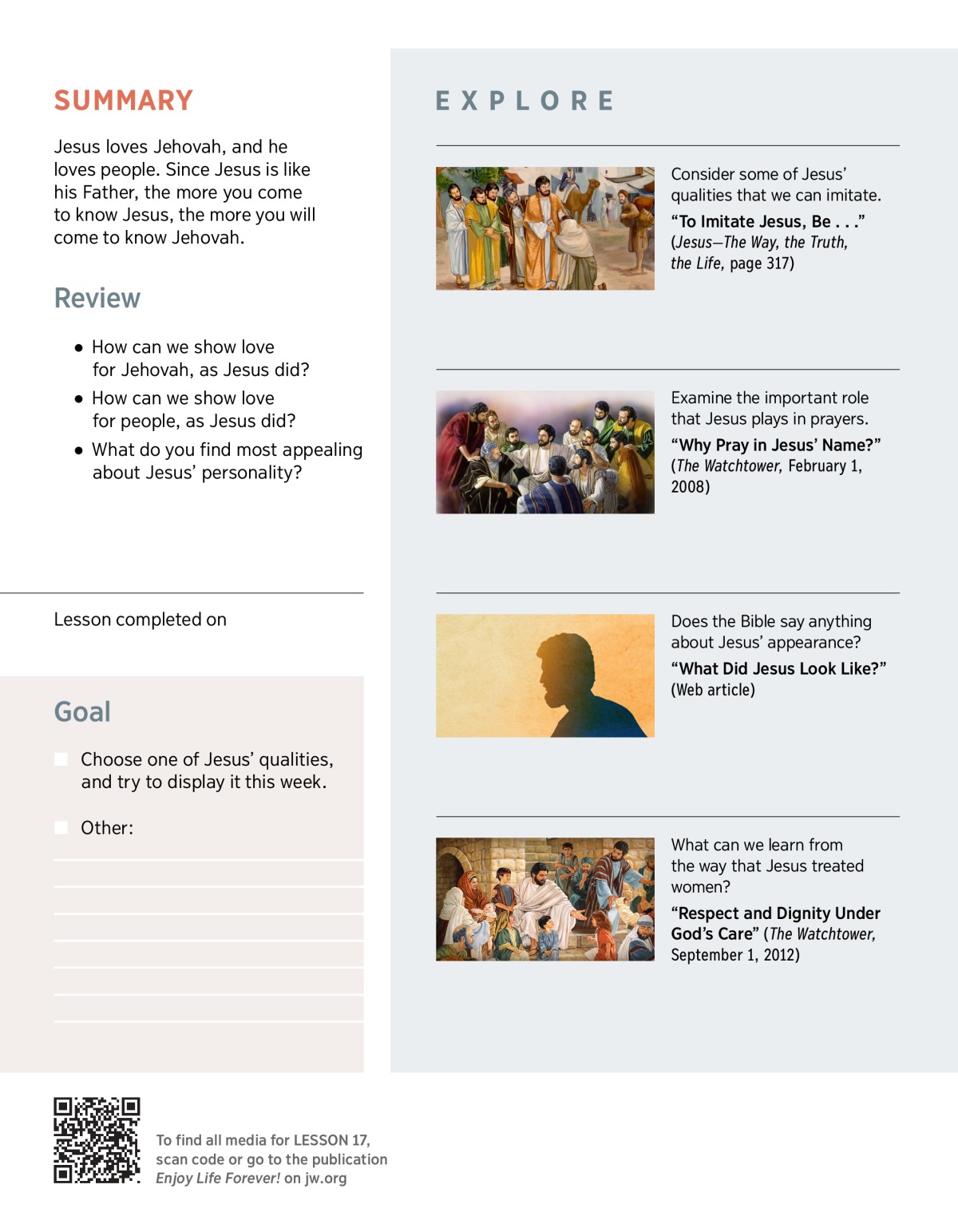 Jesus loves Jehovah, and he loves people. Since Jesus is like his Father, the more you come to know Jesus, the more you will come to know Jehovah.