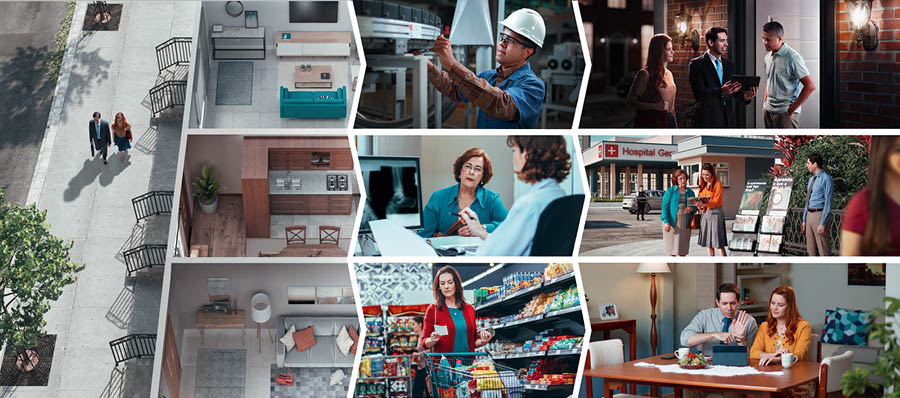 c PICTURE DESCRIPTION: (from top to bottom): A husband and wife preach where it is difficult to find people at home. The first householder is at his job, the second one is at a medical clinic, and the third one is out shopping. They reach the first householder by visiting him at a later hour of the day. They meet the second one while sharing in public witnessing near the clinic. They reach the third householder by giving her a phone call.
