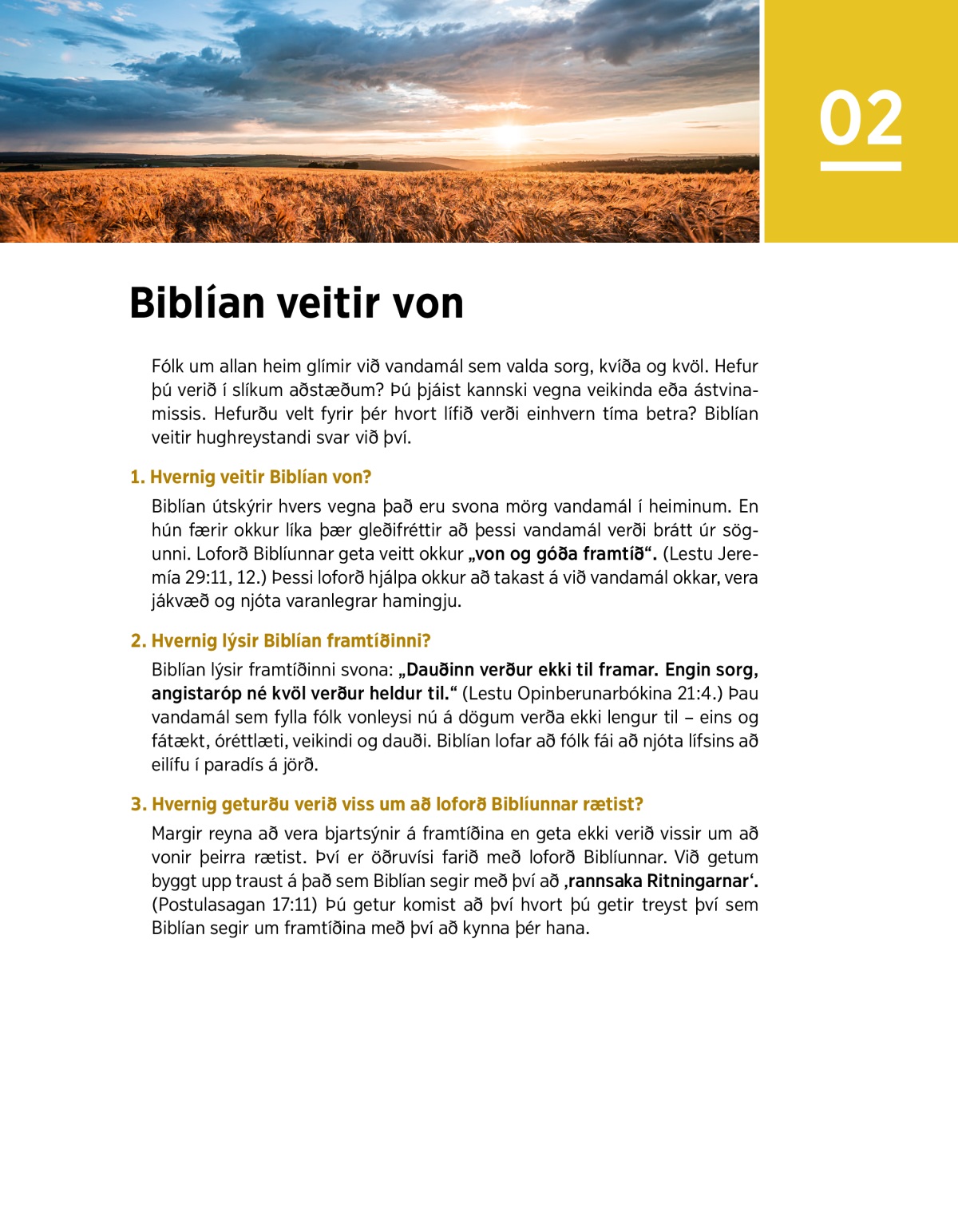 Biblían lofar okkur hamingjuríkri framtíð og gefur okkur þannig von og hjálp til að takast á við erfiðleika.