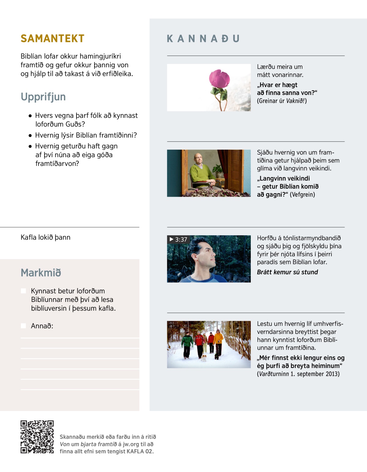 Skoðaðu nokkur af loforðum Biblíunnar varðandi framtíðina. Kynntu þér hvernig vonin sem Biblían gefur hjálpar fólki núna.