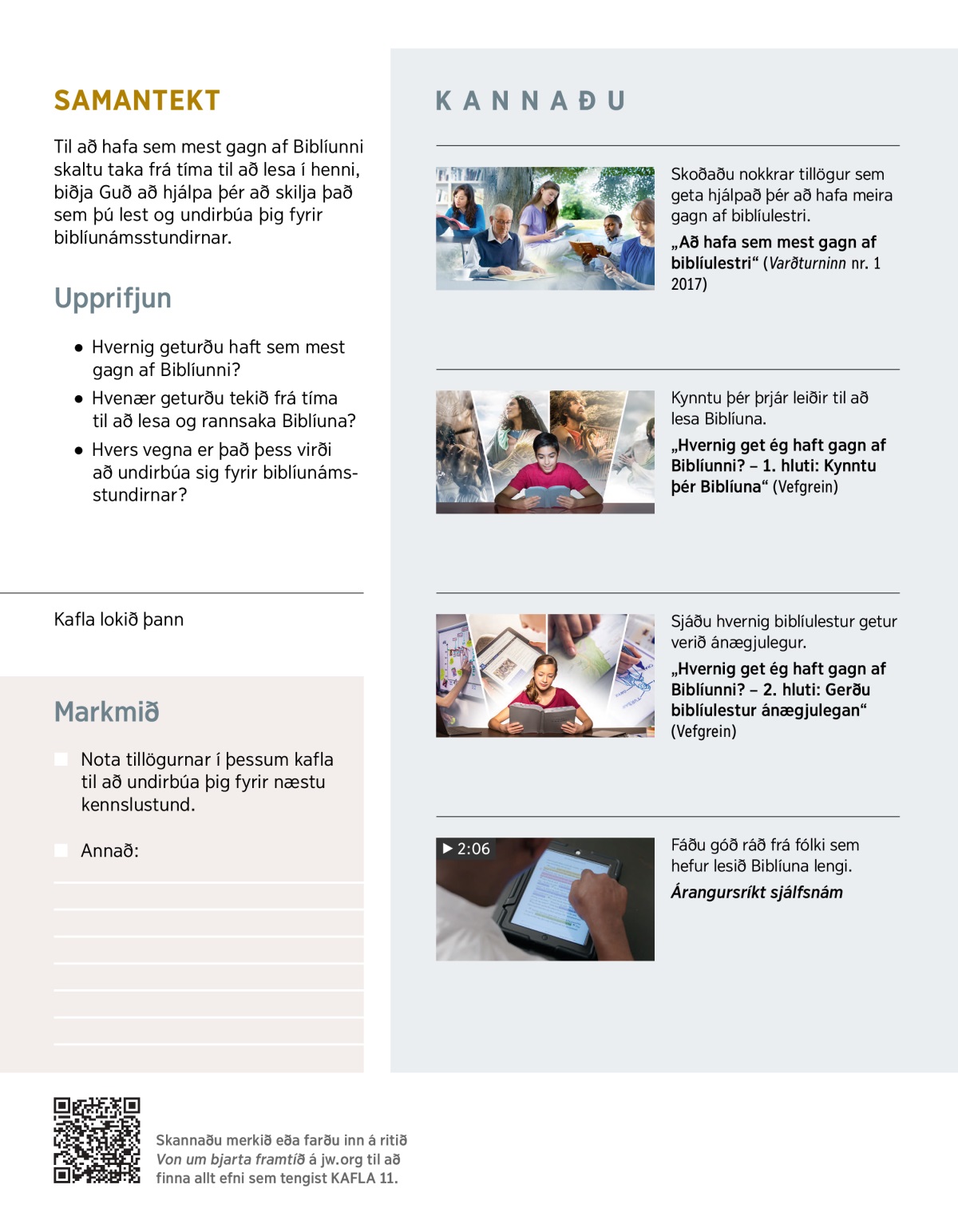 Hvernig geturðu haft sem mest gagn af hverri kennslustund? Prófaðu eftirfarandi aðferð þegar þú undirbýrð kafla í þessari bók: