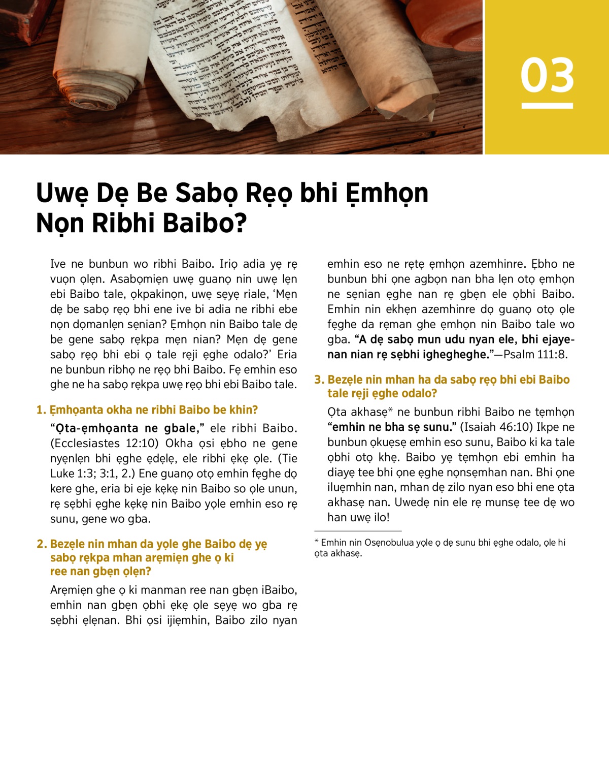 3. Bezẹle nin mhan ha da sabọ rẹọ bhi ebi Baibo tale rẹji ẹghe odalo?